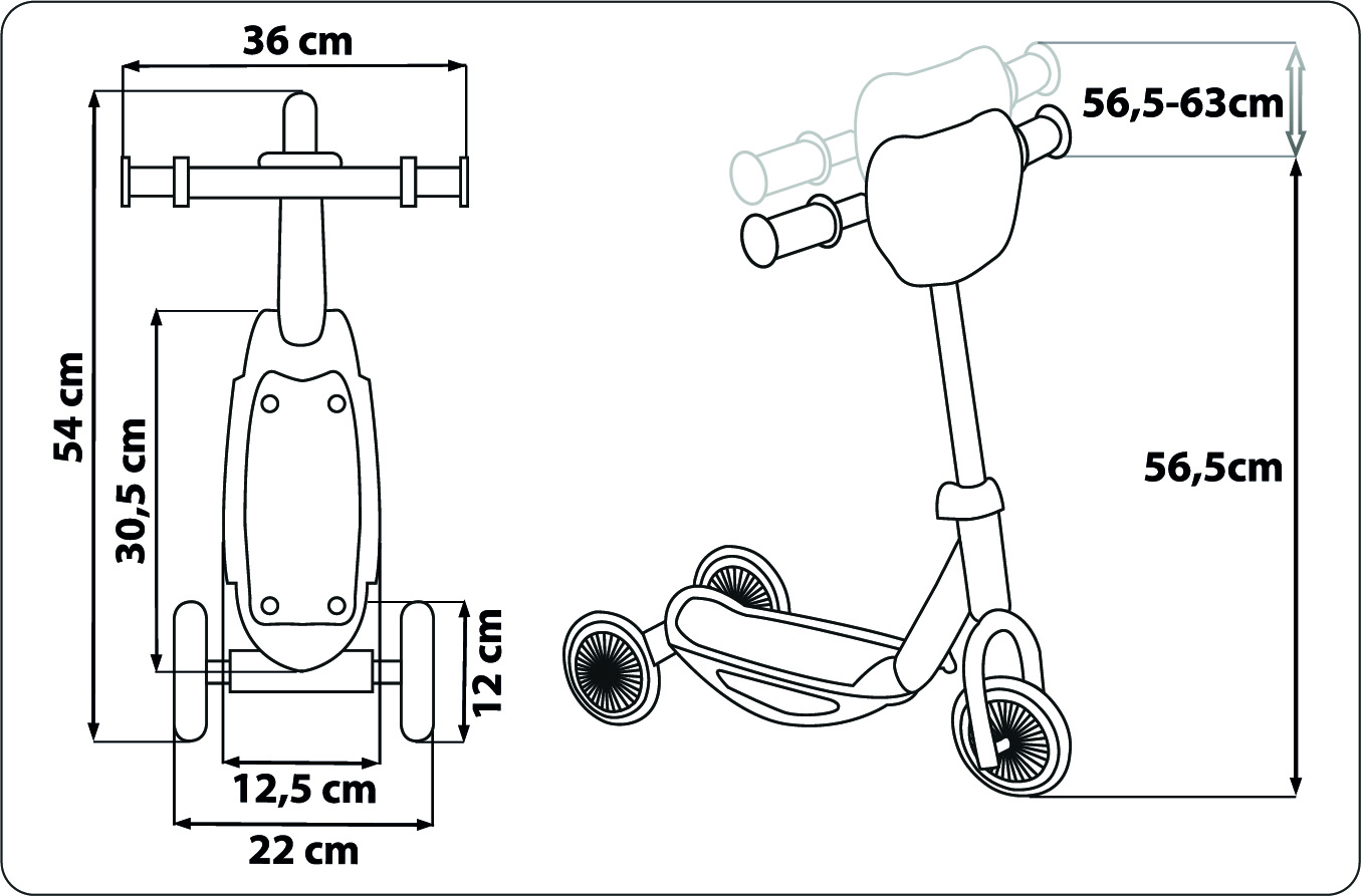 Dwa tylne kółka zapewniają bezpieczeństwo oraz utrzymanie równowagi dziecka podczas korzystania z produktu.