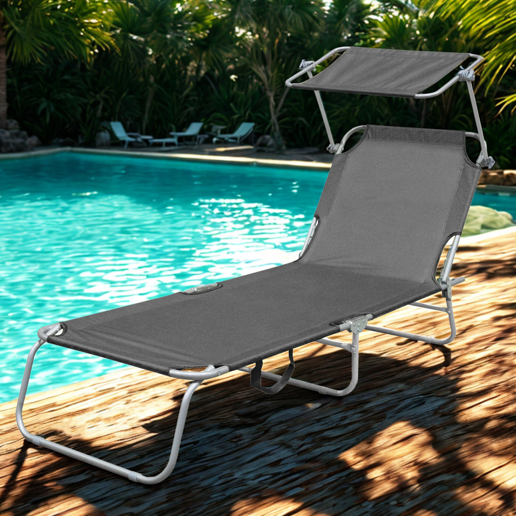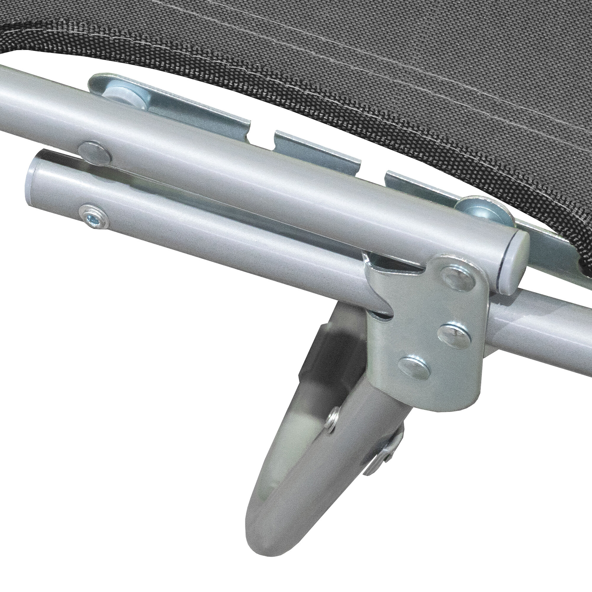 Składany leżak ogrodowy o wzmocnionej konstrukcji stalowej, o nowoczesnym wzornictwie, odpowiedni do ogrodów, na kemping lub plażę.
