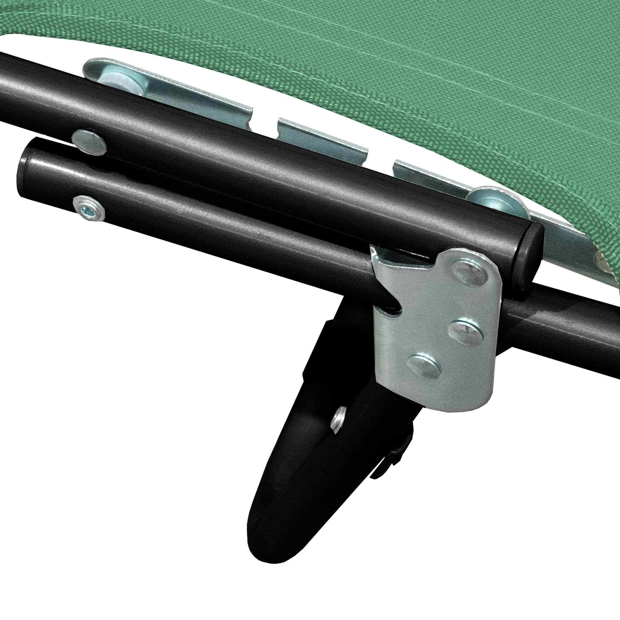 Składany leżak ogrodowy o wzmocnionej konstrukcji stalowej, o nowoczesnym wzornictwie, odpowiedni do ogrodów, na kemping lub plażę.