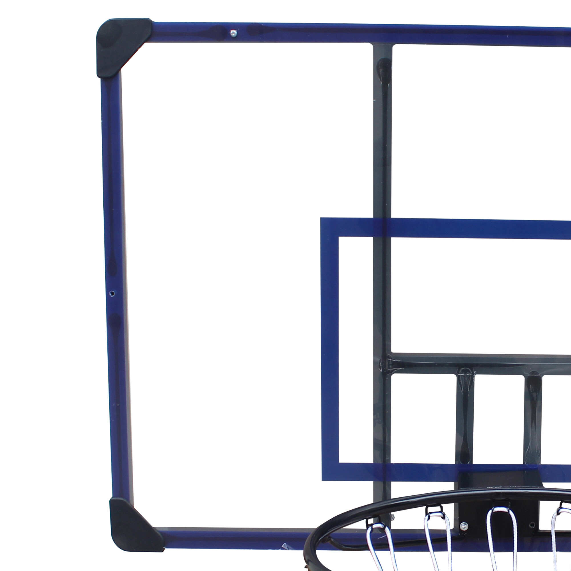 Tablica kosza wykonana jest z solidnego tworzywa sztucznego o grubości 26 mm z metalowymi prętami wzmacniającymi w kształcie litery V dla bezpiecznego i pewnego mocowania na ścianie.