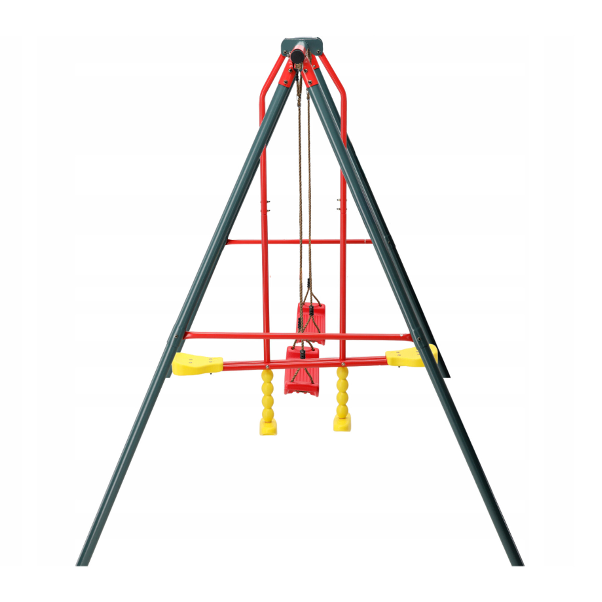 Solidna metalowa rama zapewnia huśtawce doskonałą stabilność na każdej nawierzchni zewnętrznej.