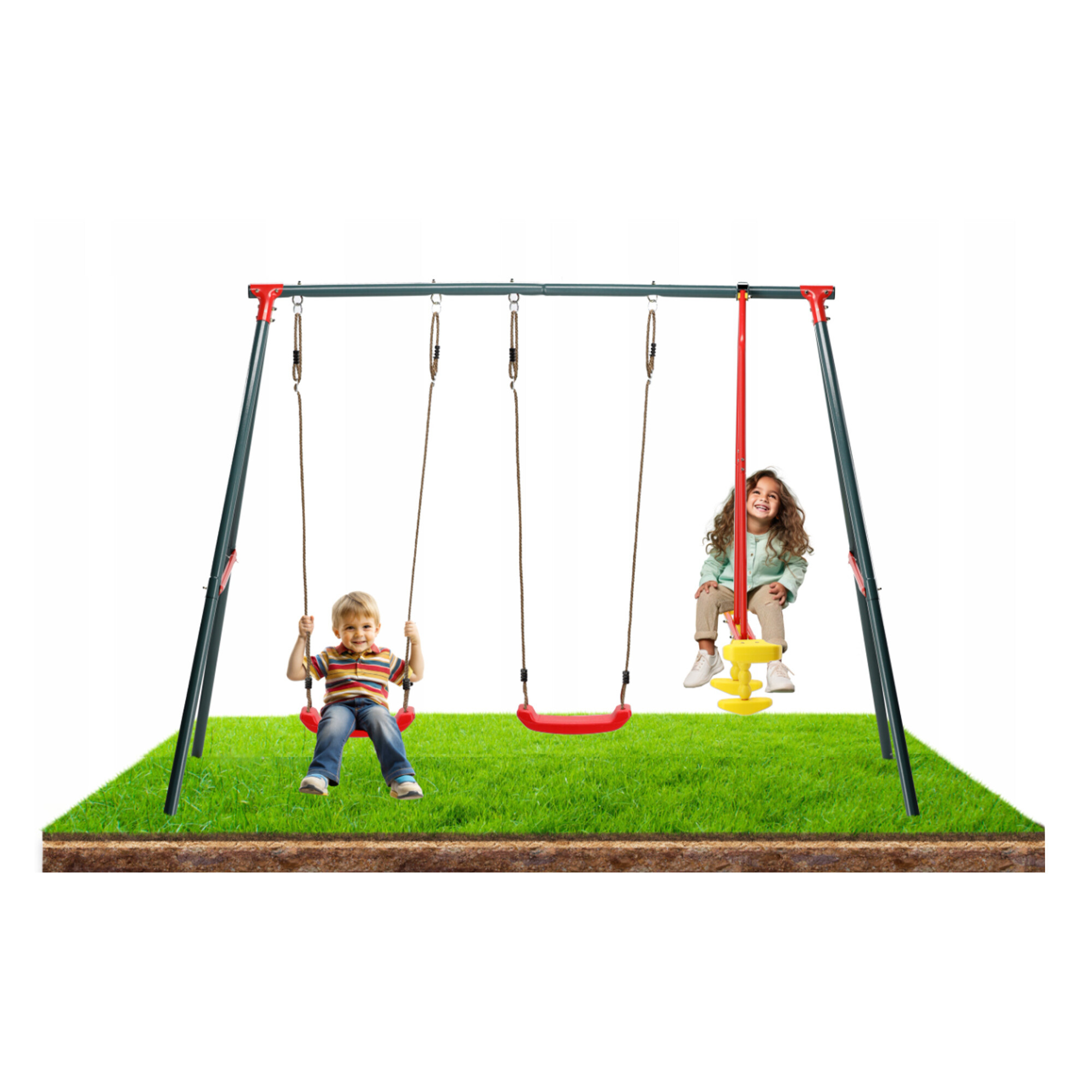 - Siedziska huśtawki wykonane są z niezwykle trwałego tworzywa sztucznego.