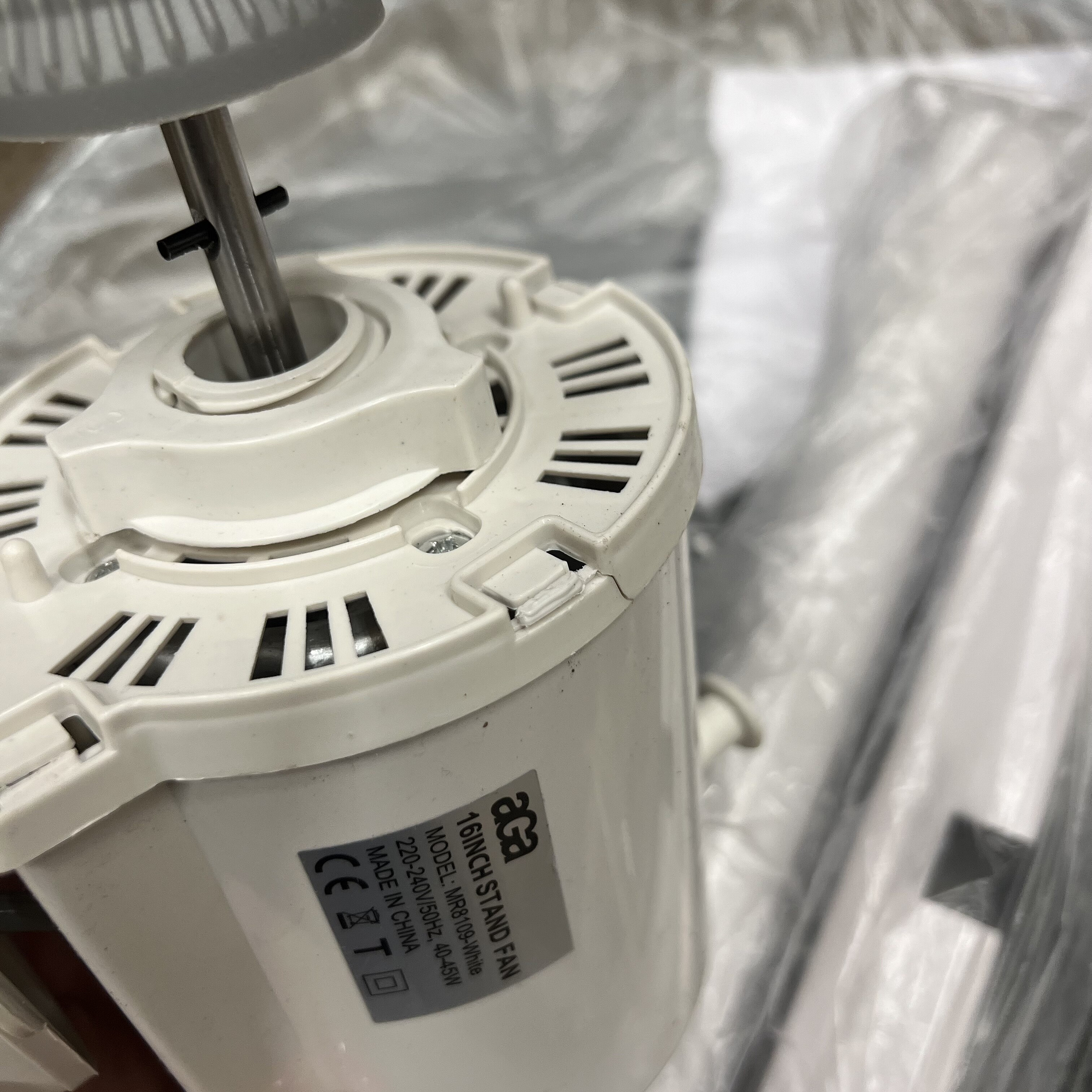 Ten wentylator jest w pełni funkcjonalny, jednak w jednym miejscu ma pękniętą osłonę, a obudowa pochodzi z innego modelu.