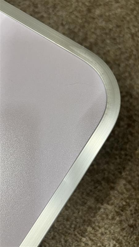 Ten stół jest w pełni użyteczny, jednak ma lekko uszkodzony blat. Jest to wada kosmetyczna, która nie wpływa na funkcjonalność. Poza tym defektem, produkt jest w dobrym stanie.