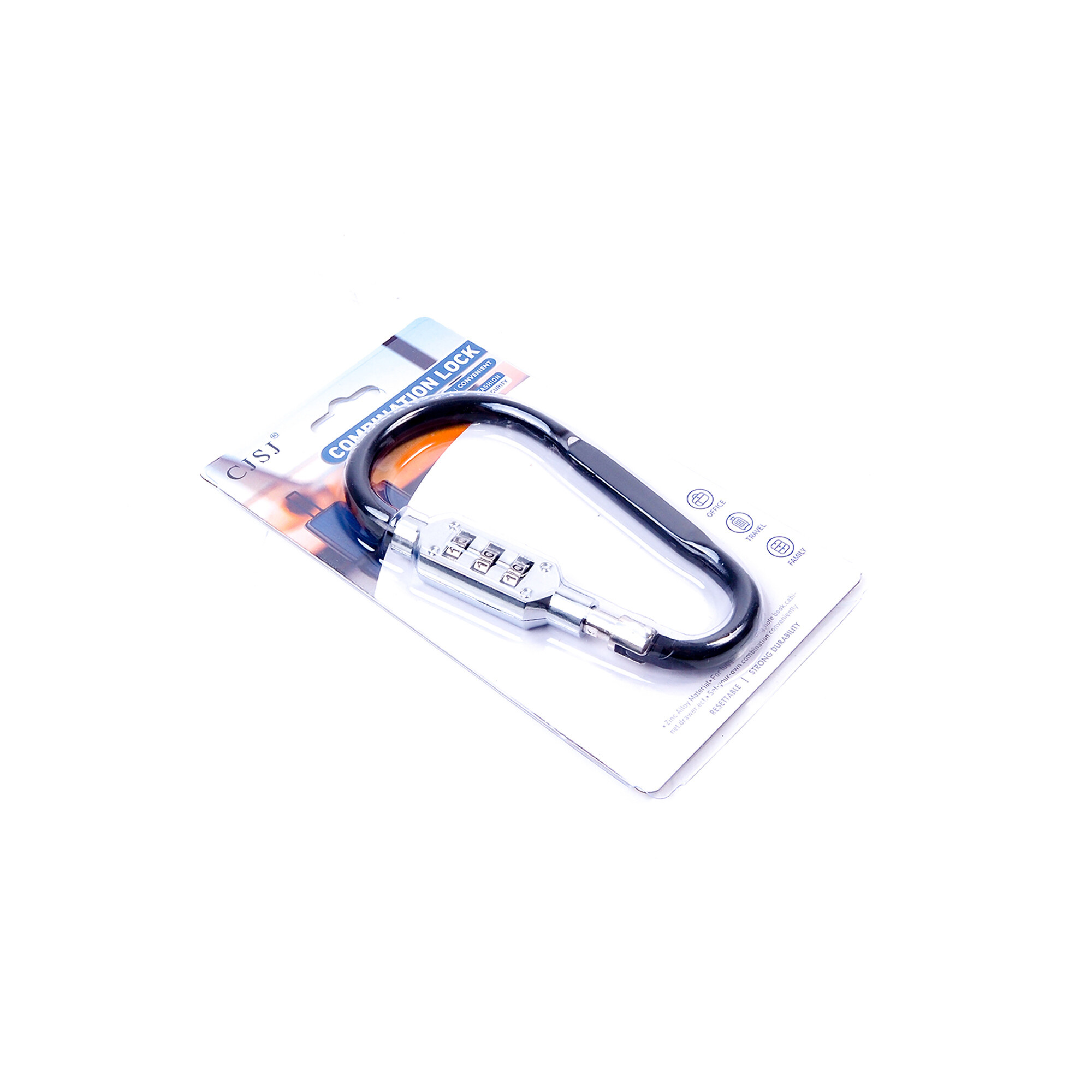 Zamek szyfrowy w kształcie karabińczyka zwiększy bezpieczeństwo bagażu podróżnego, torby na laptopa, a także może służyć do przypięcia kasku do roweru. Przydatny pomocnik podczas podróży.
