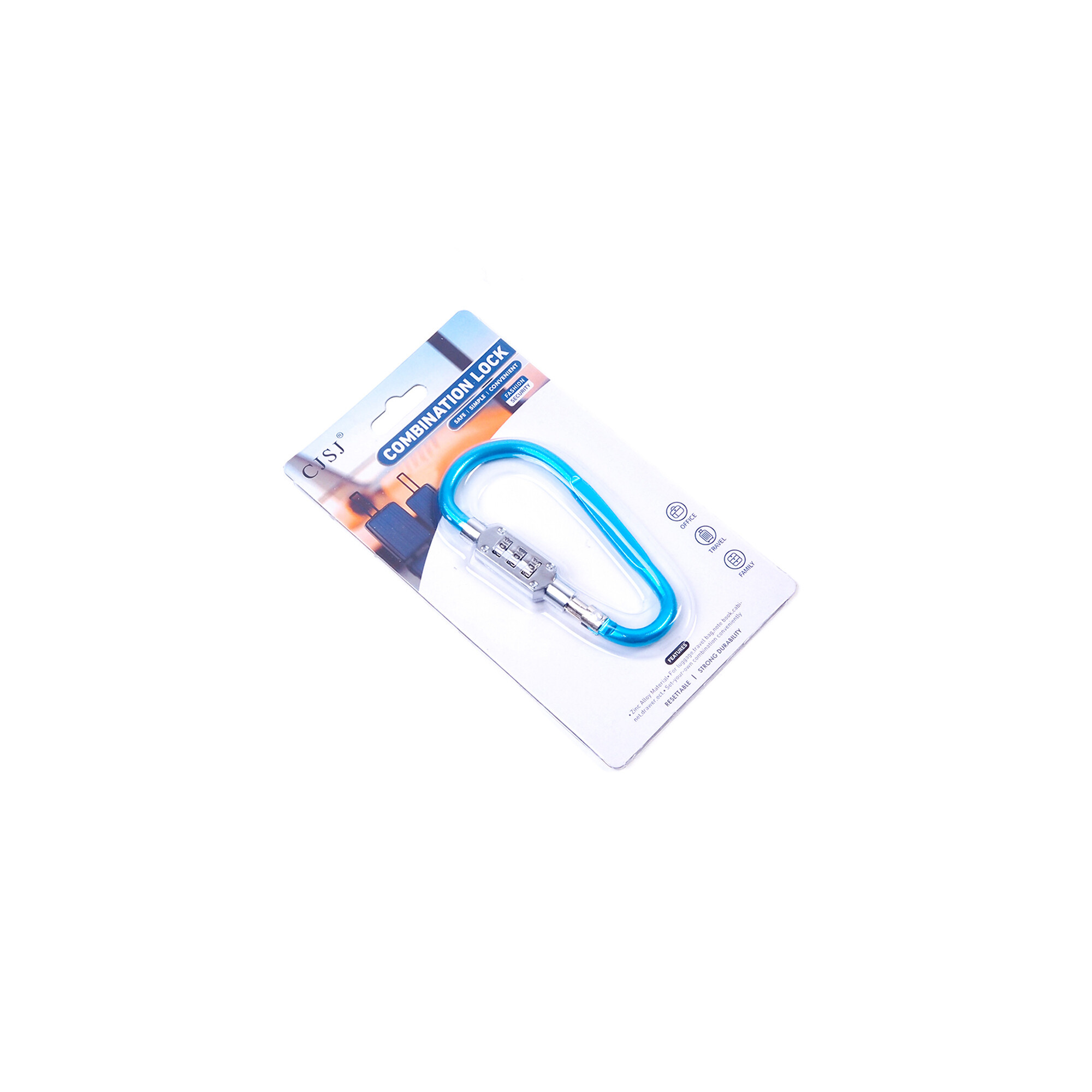 Zamek szyfrowy w kształcie karabińczyka zwiększy bezpieczeństwo bagażu podróżnego, torby na laptopa, a także może służyć do przypięcia kasku do roweru. Przydatny pomocnik podczas podróży.