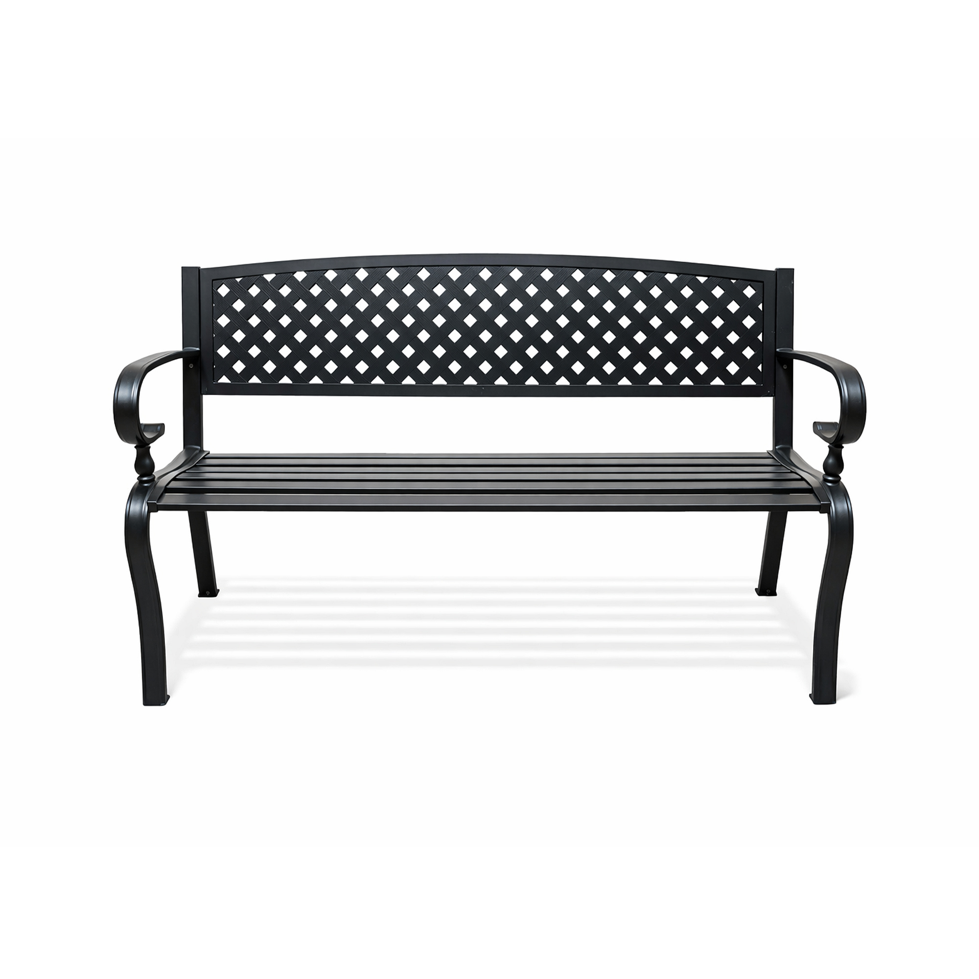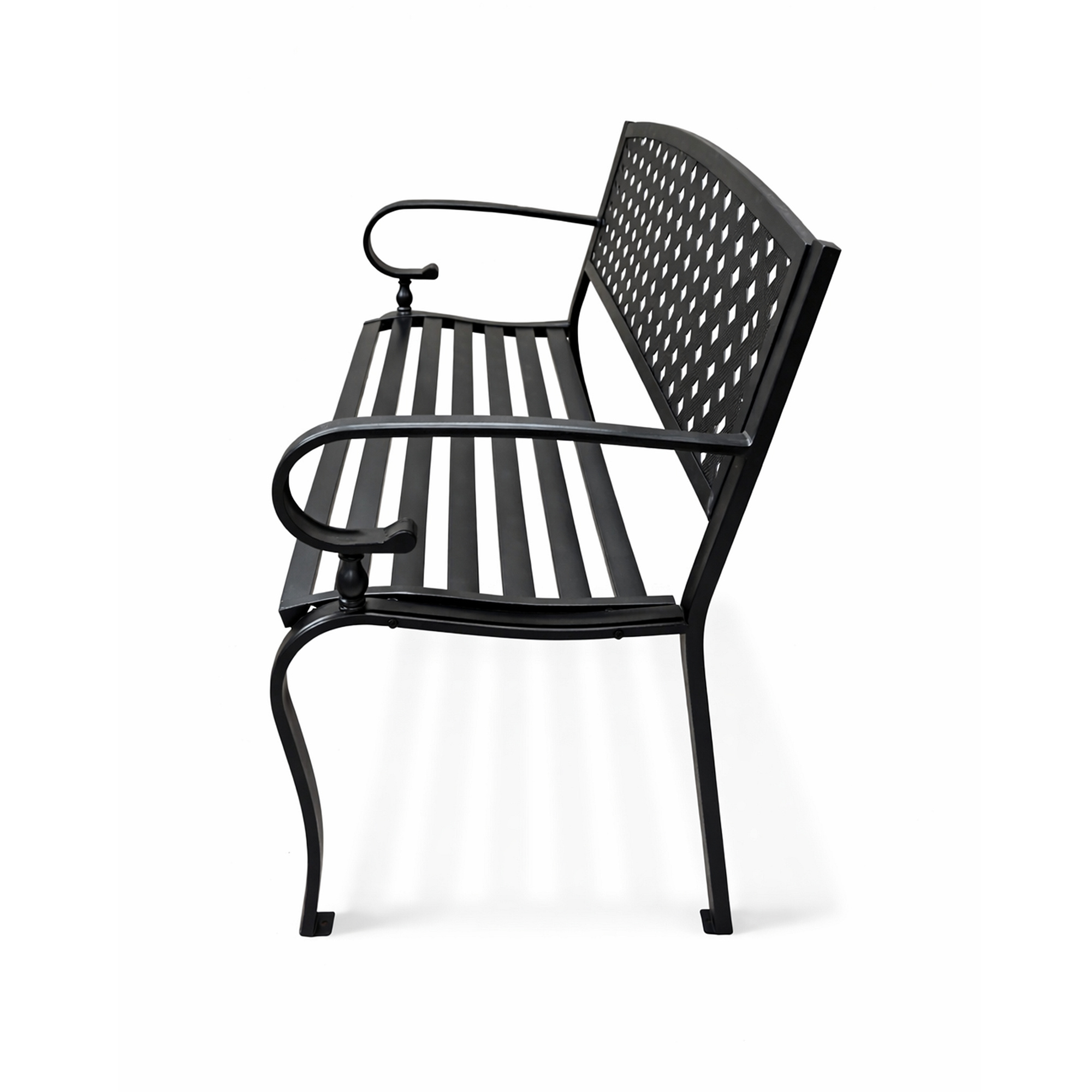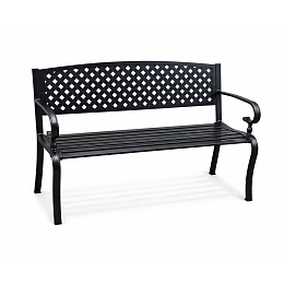 Konstrukcja ławki ogrodowej jest wykonana ze stali i żeliwa, te materiały są odporne i jednocześnie zapewniają stabilność. Konstrukcja ławki jest pokryta powłoką proszkową, dzięki czemu ławka doskonale opiera się wpływom pogody i ma długą żywotność.
