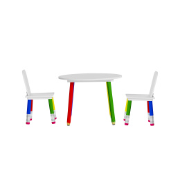 Dla najmłodszych dzieci, które mają około 80-95 cm wysokości, blat stolika powinien być umieszczony od podłogi w odległości 40 cm, a krzesełko 21 cm. Jeśli maluch podrośnie i mierzy około 93-116 cm (2-3 lata), należy podnieść wysokość blatu o 60 cm, a siedziska o 50 cm. Nasz zestaw jest idealny dla dzieci 2-3 lata