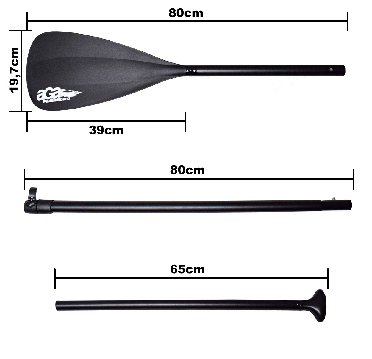 W opakowaniu znajdziesz wszystko, czego potrzebujesz, aby wyjść na wodę: trzyczęściowe aluminiowe wiosło o regulowanej długości, pompkę z manometrem, smycz bezpieczeństwa, fin,zestaw naprawczy i torbę do przenoszenia paddleboardu.