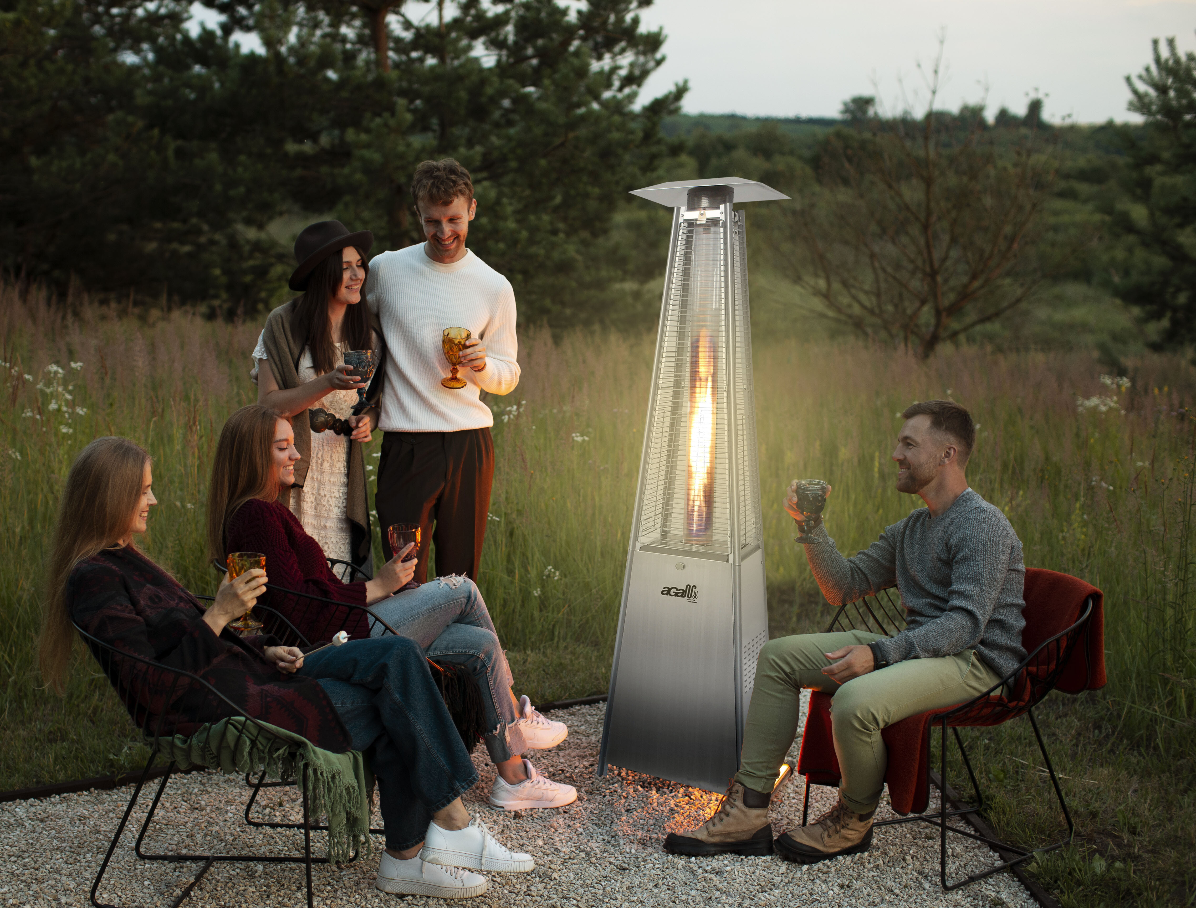 Dzięki parasolowi grzewczemu gazowemu Aga możesz teraz cieszyć się spotkaniami towarzyskimi lub przyjemnymi wieczorami na tarasie lub w ogrodzie o każdej porze roku.