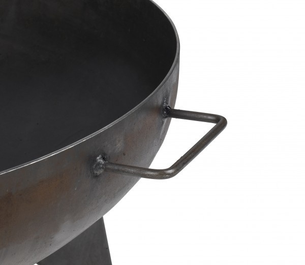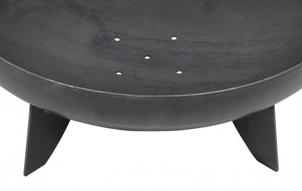 Kominek okrągły o średnicy 80 cm i głębokości misy 21 cm wykonany jest z litej stali o grubości ok. 2,5 mm. Aby zapewnić maksymalną stabilność, jest on wyposażony w trzy solidne podstawy wykonane z tego samego materiału.