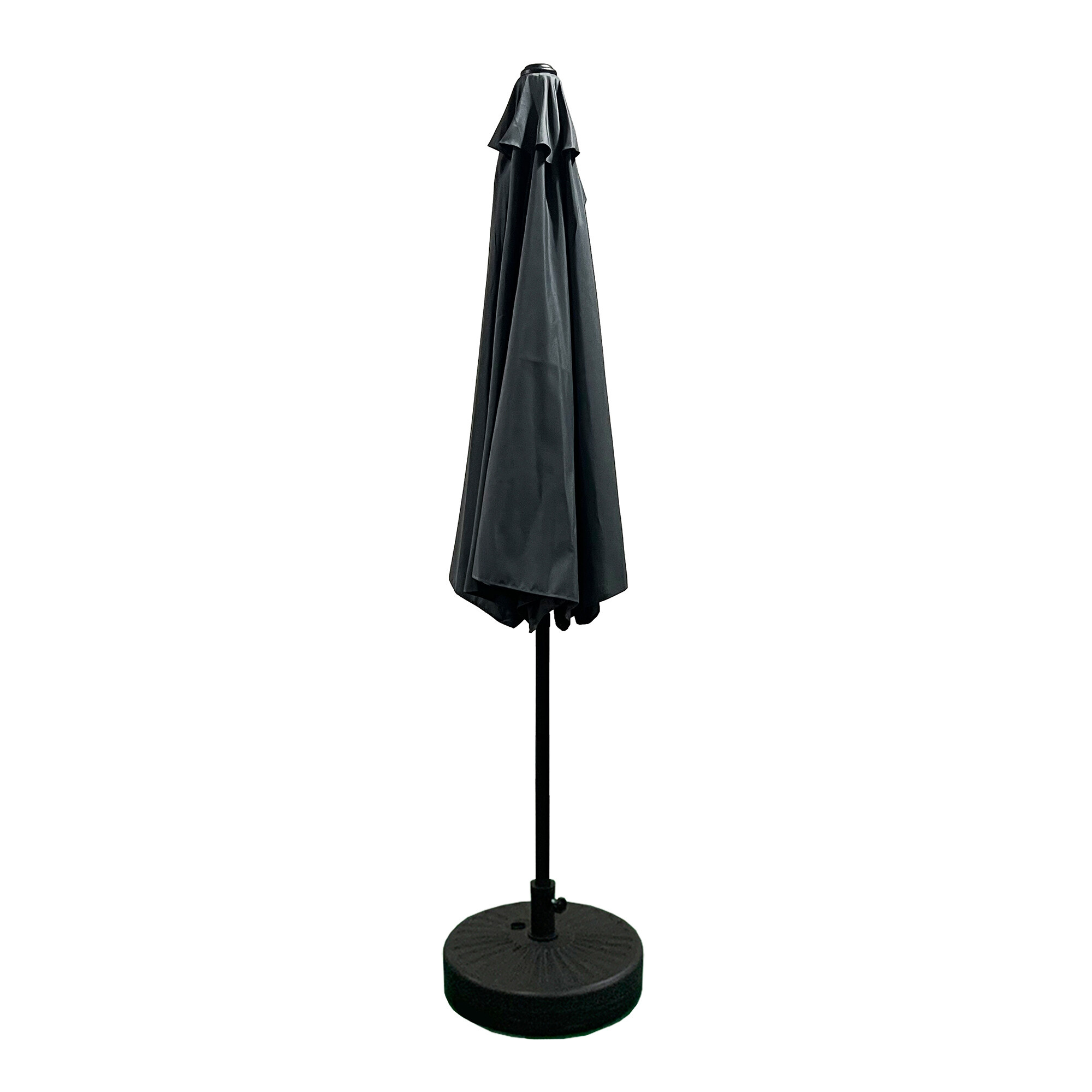 Półokrągły parasol ogrodowy o solidnej konstrukcji i wysokiej jakości pokrowcu wykonanym z trwałego materiału poliestrowego.