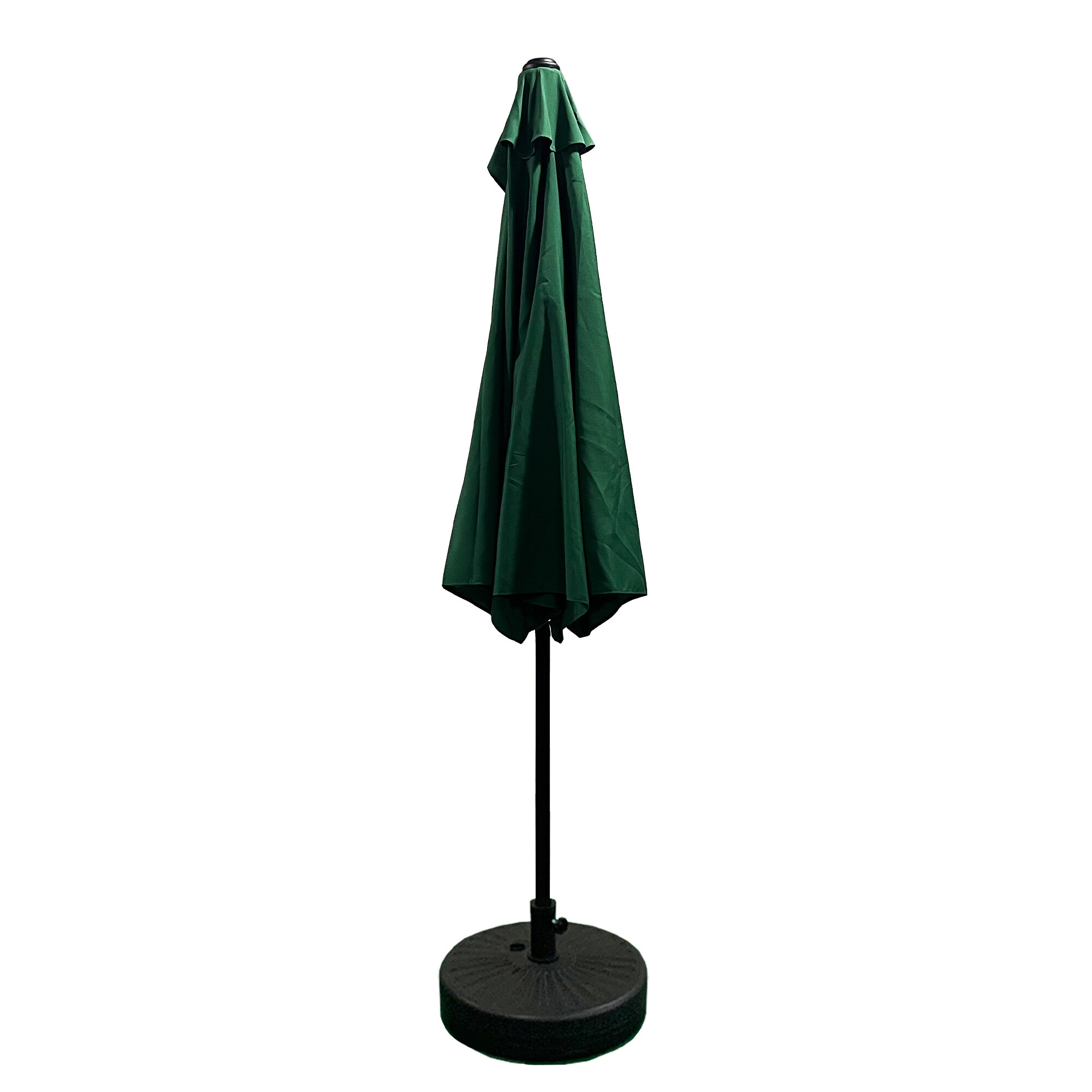 Półokrągły parasol ogrodowy o solidnej konstrukcji i wysokiej jakości pokrowcu wykonanym z trwałego materiału poliestrowego.