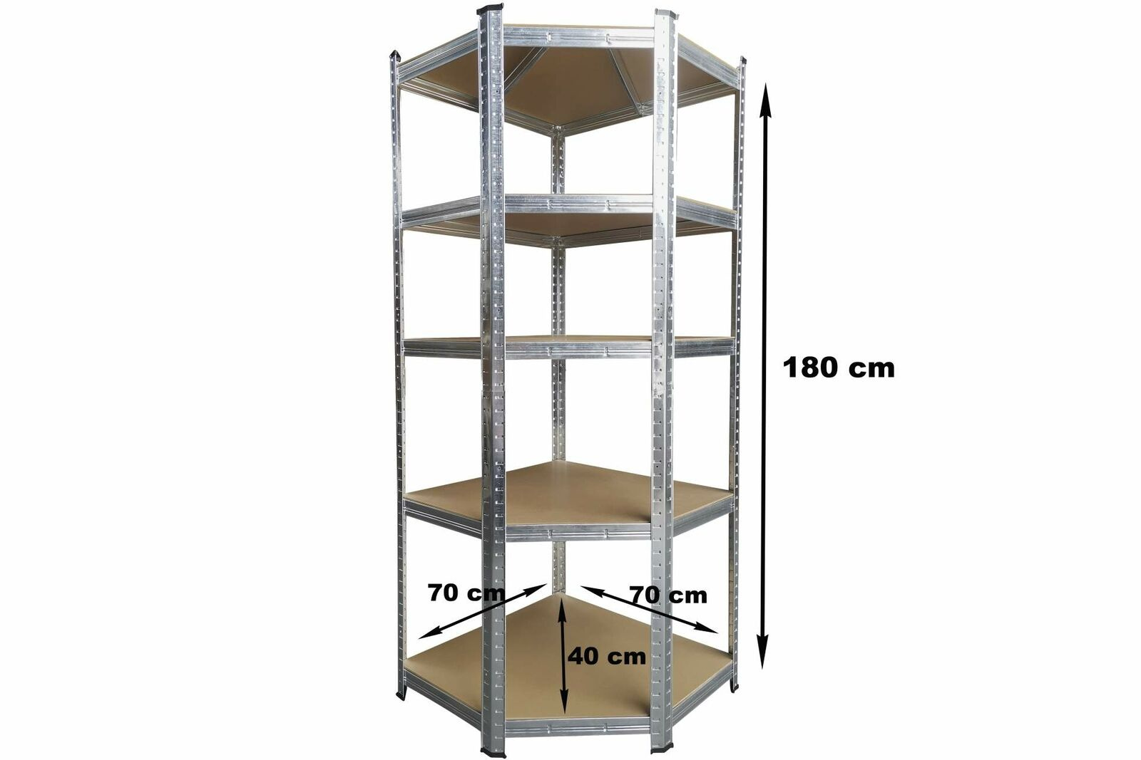 Na wysokości ok. 180 cm masz do dyspozycji 5 półek mdf, które możesz wsuwać według potrzeb. Rama ze stali ocynkowanej w kolorze srebrnym gwarantuje stabilność i dużą nośność ok. 875 kg (ok. 175 kg na półkę).