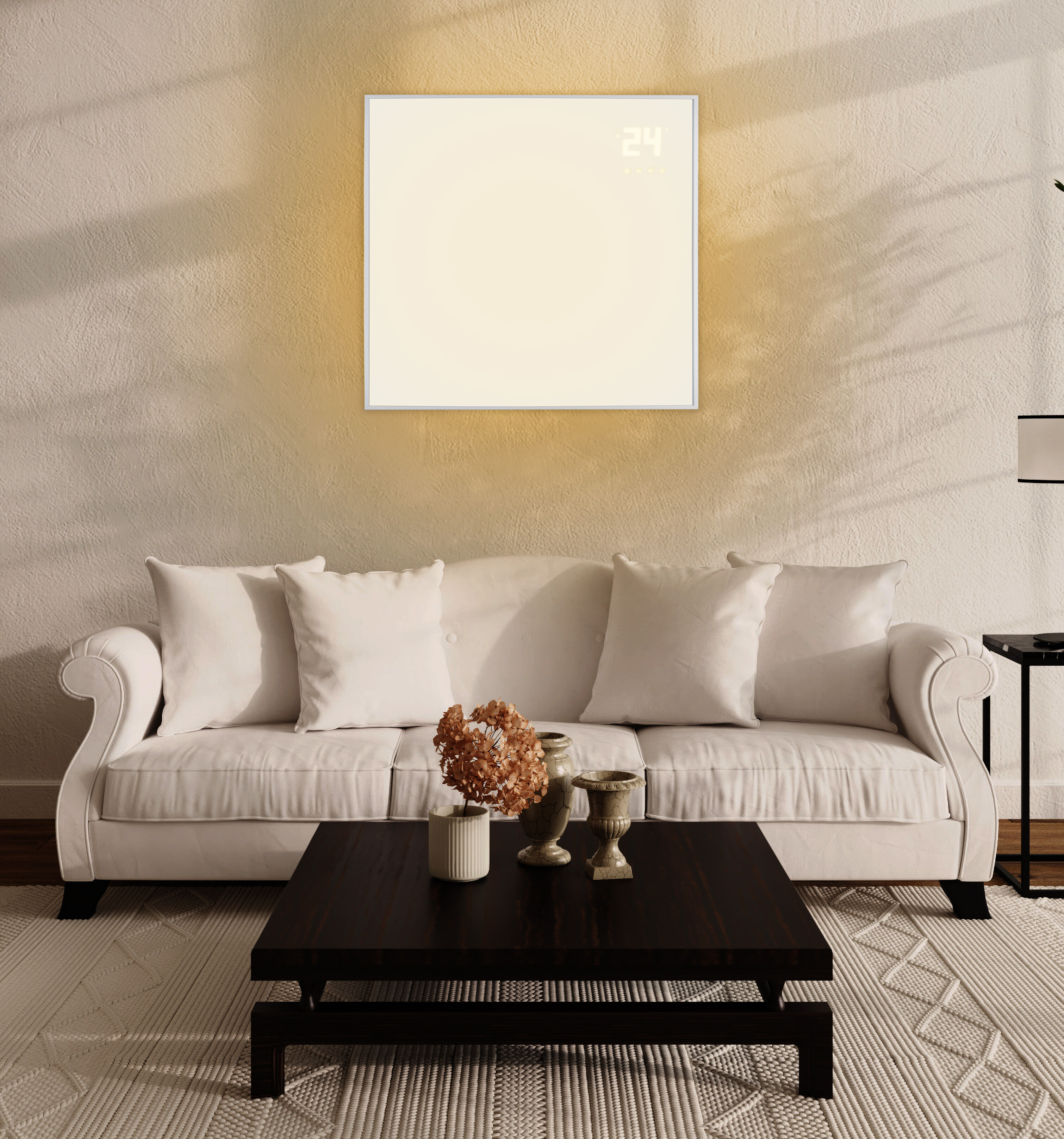 Panel może być również sterowany za pomocą pilota lub, dzięki zintegrowanemu Wi-Fi, panel grzewczy może być podłączony do Internetu, a następnie sterowany z dowolnego miejsca za pomocą aplikacji Tuya.