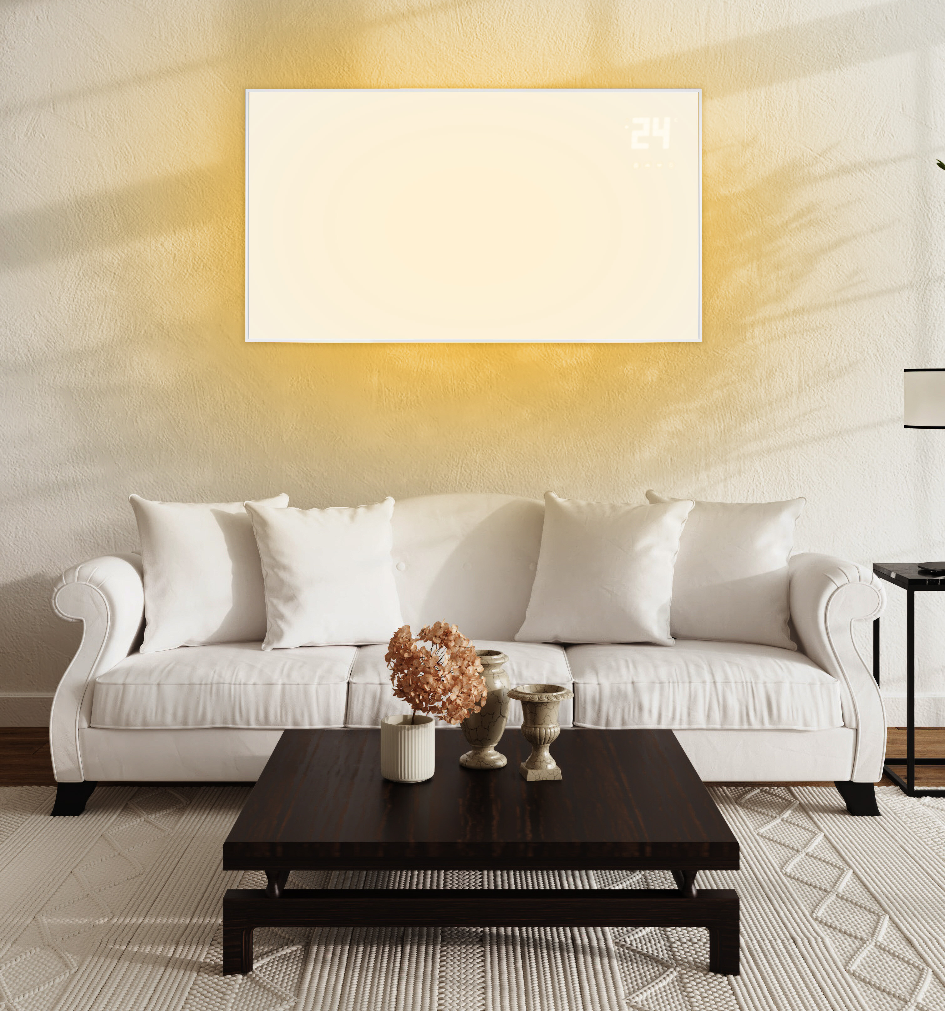 Panel może być również sterowany za pomocą pilota lub, dzięki zintegrowanemu Wi-Fi, panel grzewczy może być podłączony do Internetu, a następnie sterowany z dowolnego miejsca za pomocą aplikacji Tuya.