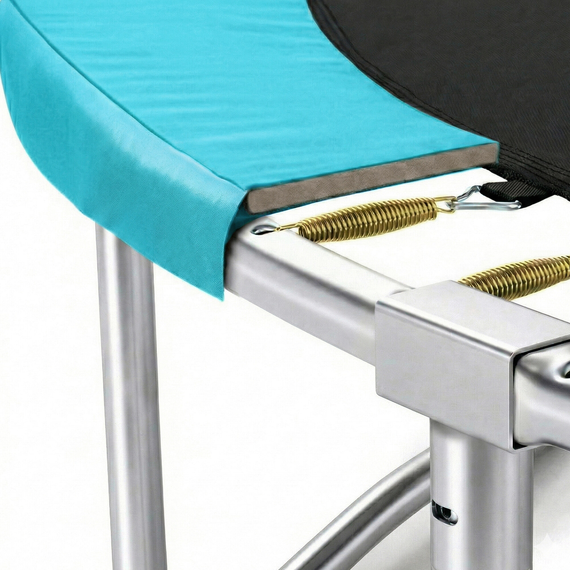 Maksymalne bezpieczeństwo trampoliny zapewnia wyściełany pas obwodowy (osłona sprężyn) wykonany z PVC, który obejmuje sprężyny na całym obwodzie trampoliny.