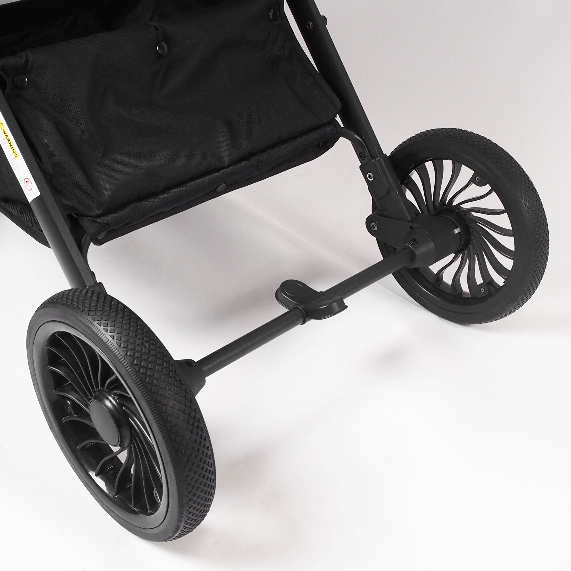 Bezpieczeństwo dziecka jest naszym priorytetem. Wózek wyposażony jest w tylne koła z centralnym hamulcem, który zapewnia stabilność i bezpieczeństwo podczas postoju. Ponadto wózek jest wyposażony w 5-punktowe pasy bezpieczeństwa, które mocno trzymają dziecko i chronią je przed wypadnięciem.