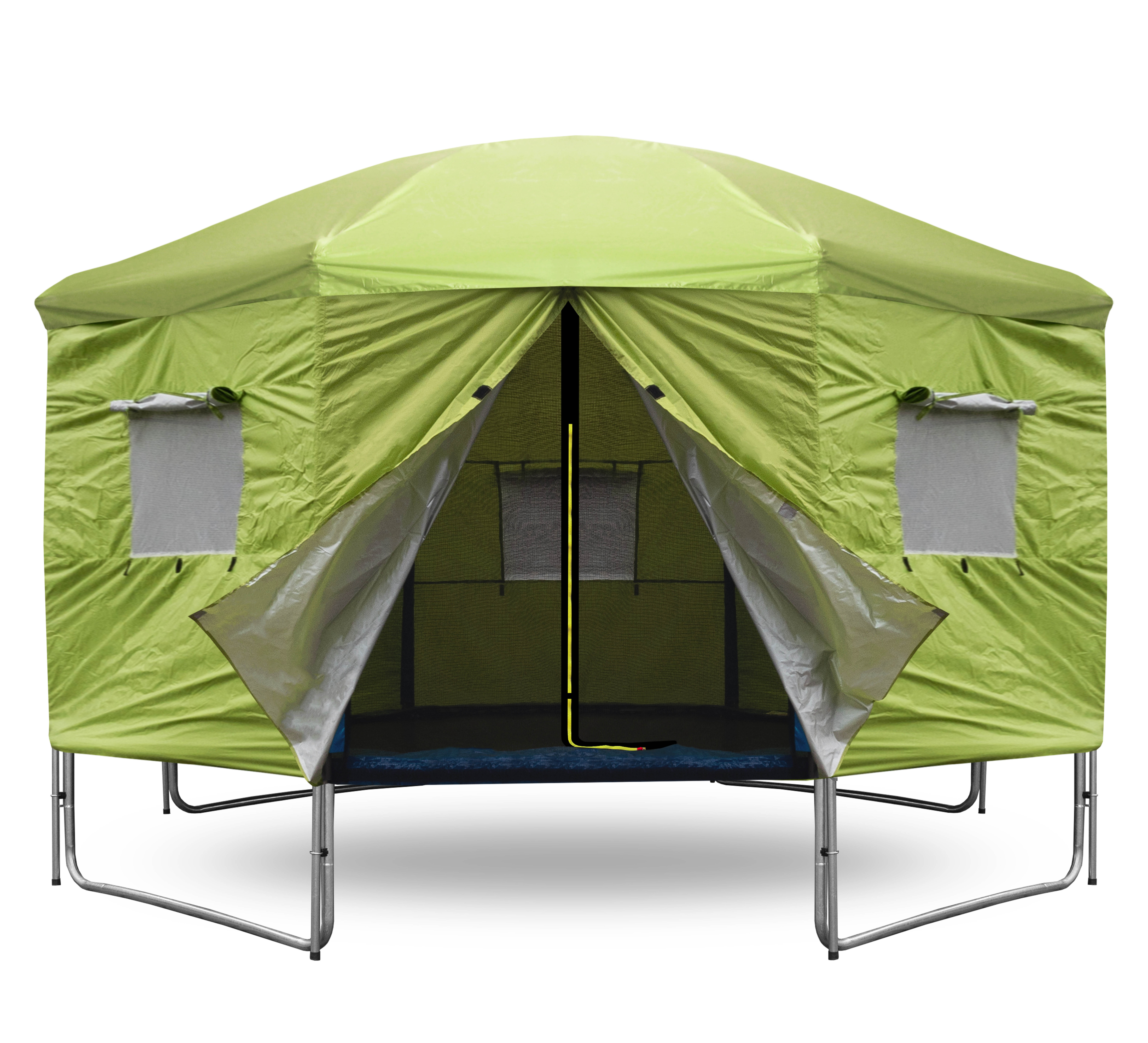 Kiedy trampolina nie jest używana, namiot chroni powierzchnię przed brudem i promieniami UV.
