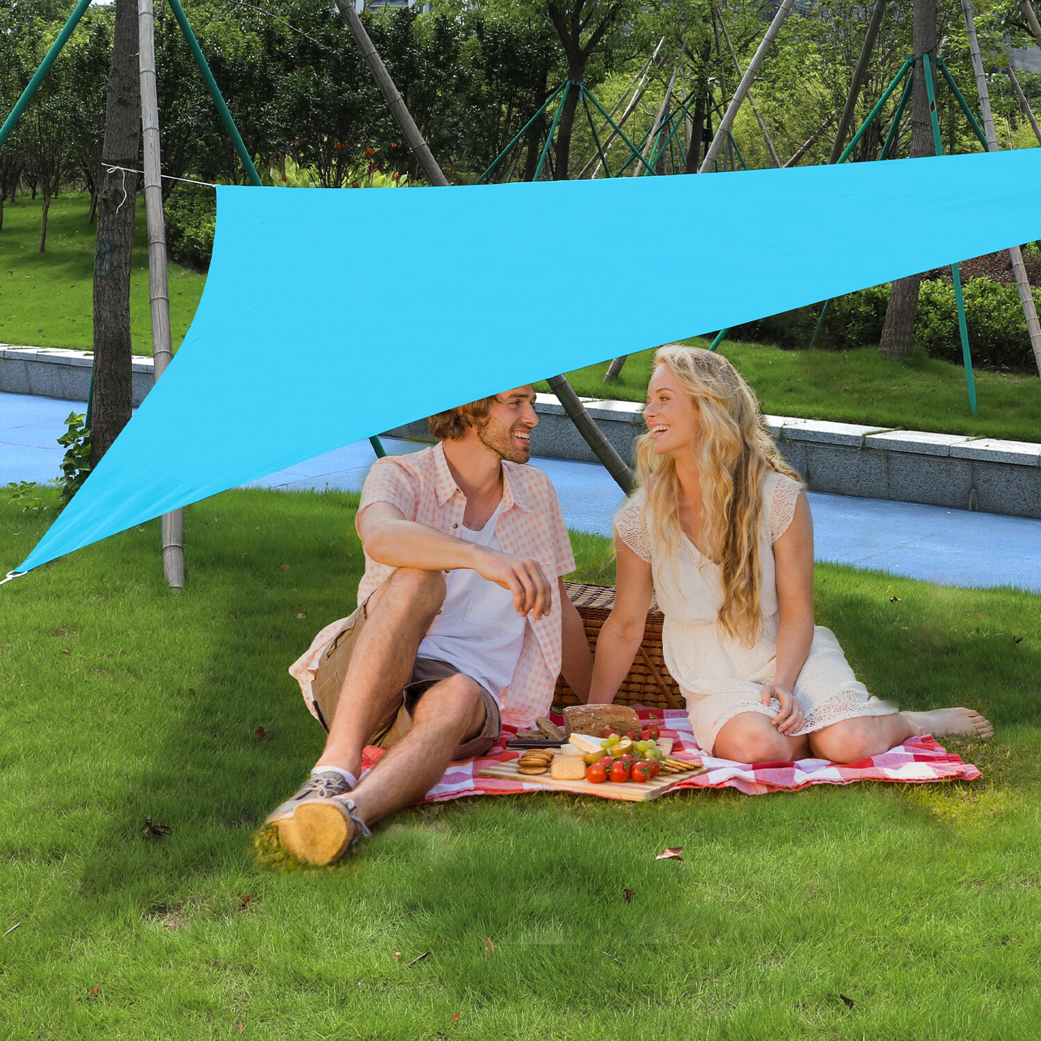 Dzięki trójkątnemu kształtowi i oczkom w każdym rogu plandeki, zawieszenie jej jest bardzo łatwe.