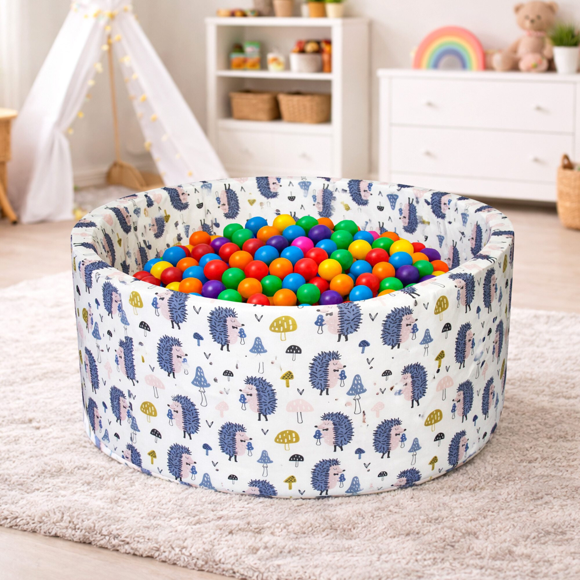 W zestawie z basenem znajduje się 200 (Ø 5,5 cm) kolorowych piłek. Wszystkie użyte materiały są najwyższej jakości. Materiały są certyfikowane.