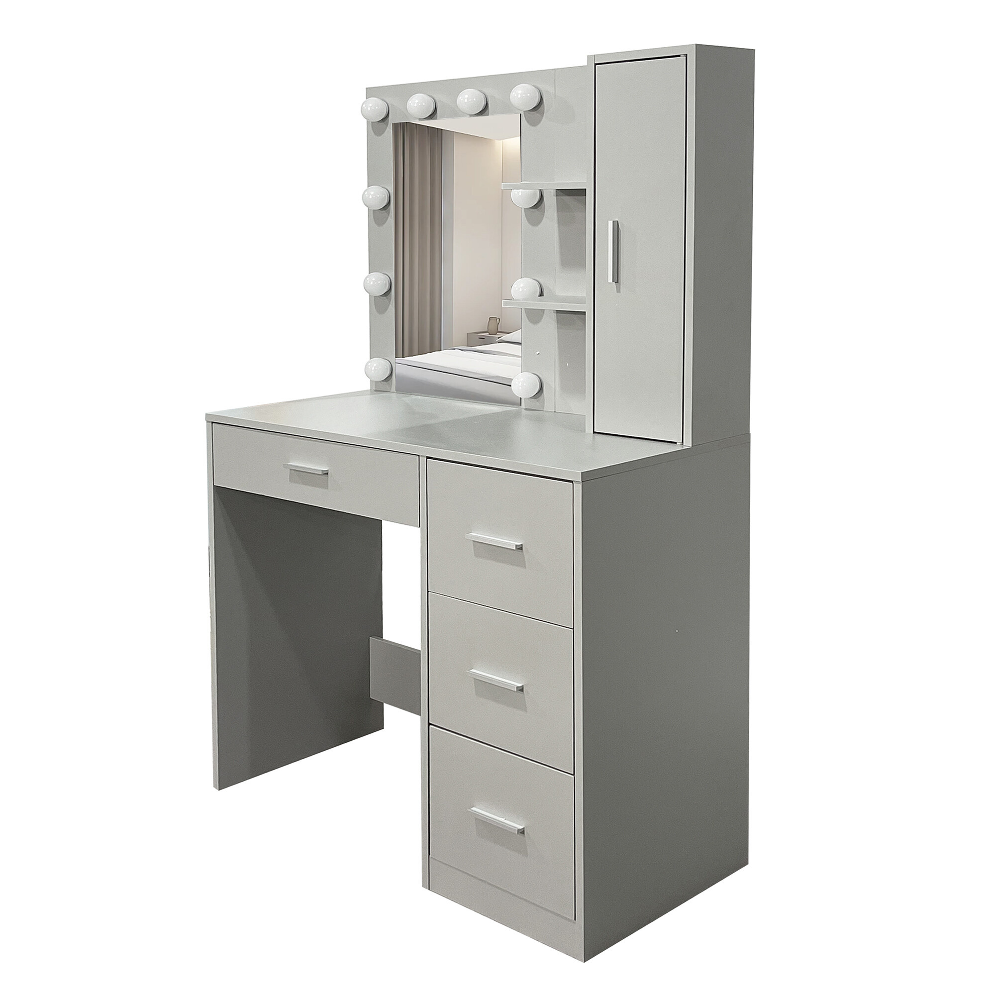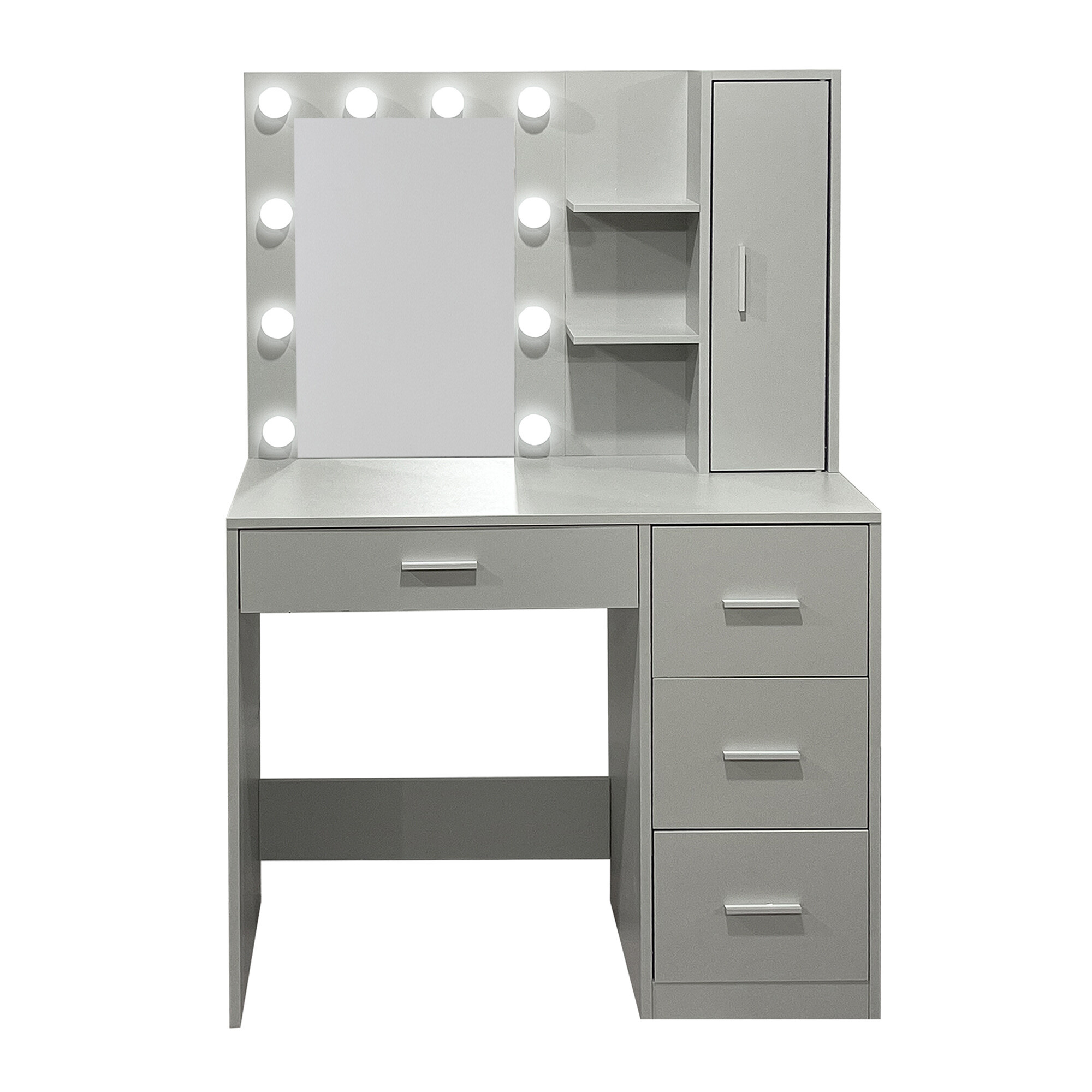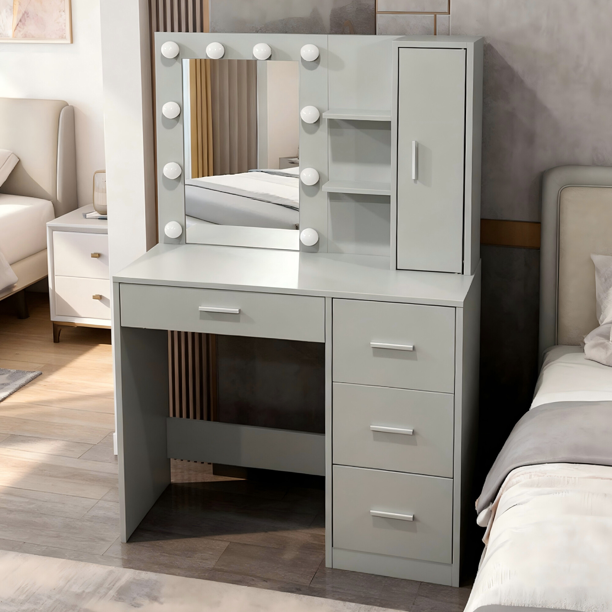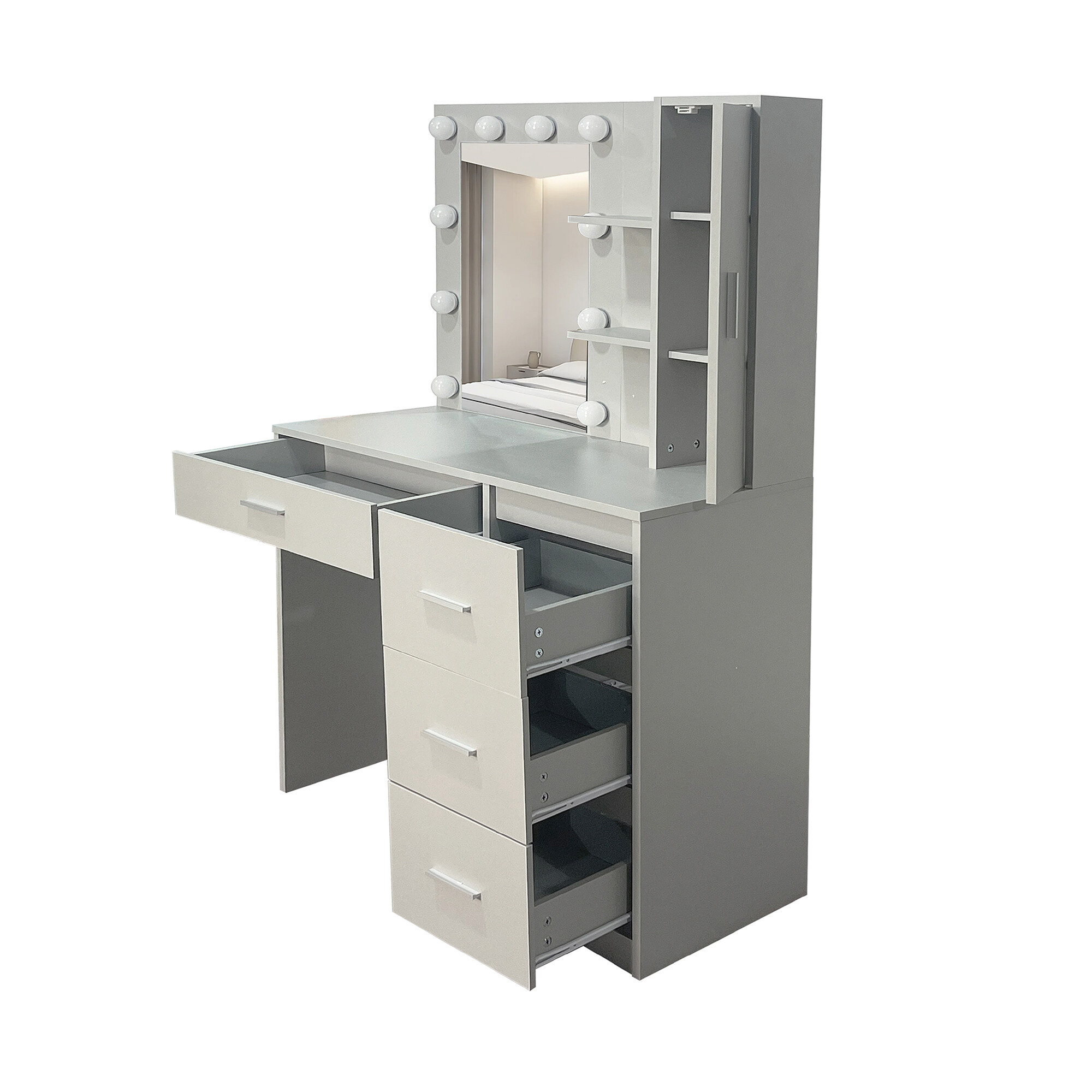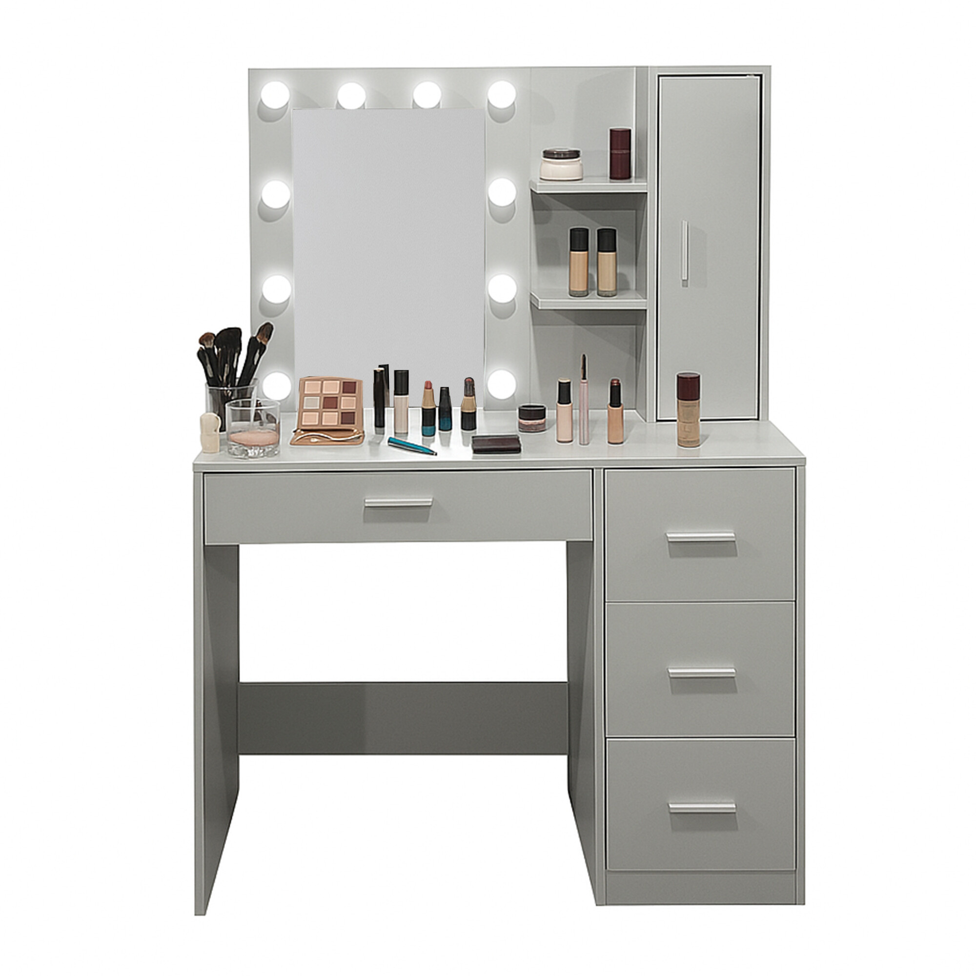 Dominantą stolika jest duże lustro z 10 żarówkami LED. Dzięki temu zawsze zapewnisz sobie idealne oświetlenie do makijażu, stylizacji włosów lub wieczornej pielęgnacji skóry.