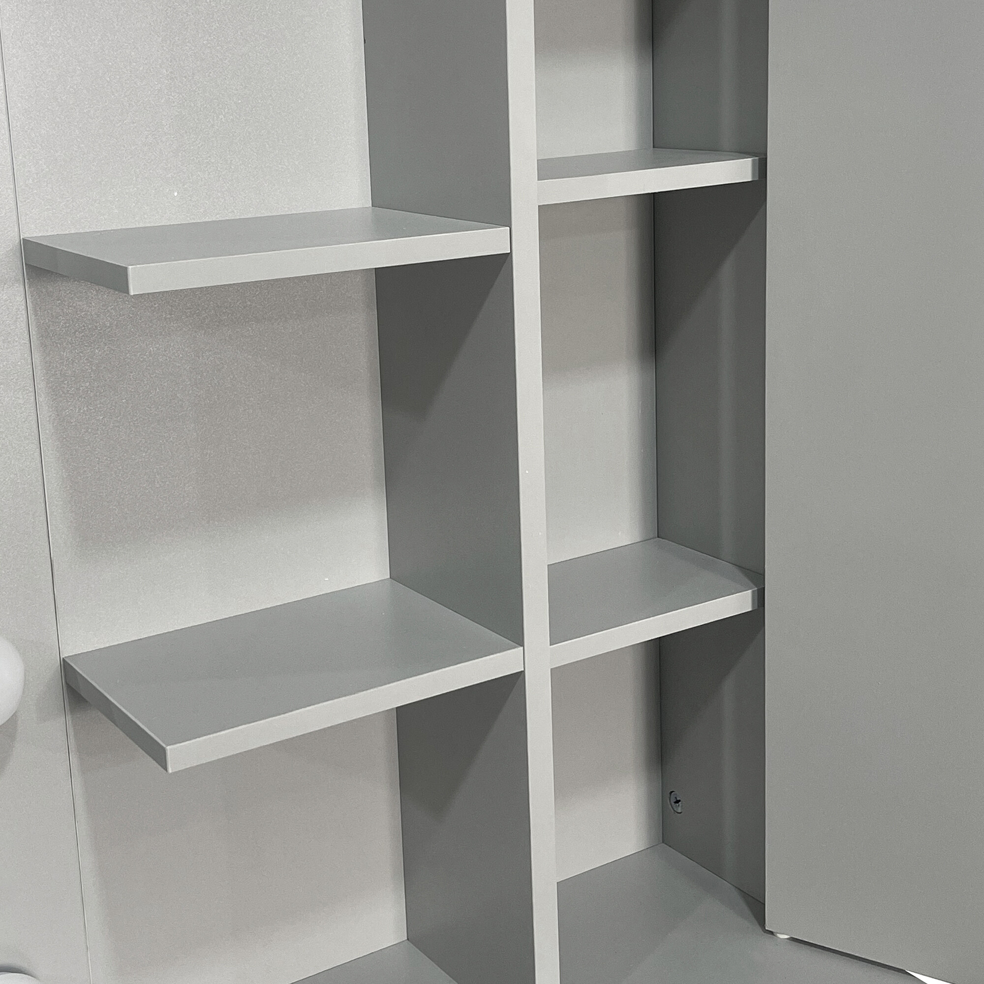 Wymiary stolika 90 × 40 × 140,5 cm gwarantują, że idealnie wpasuje się nawet do mniejszych sypialni czy mieszkań. Szara powierzchnia sprawia wrażenie eleganckiej i ponadczasowej, dzięki czemu stolik łatwo dopasować do każdego wnętrza – od nowoczesnego po klasyczne.
