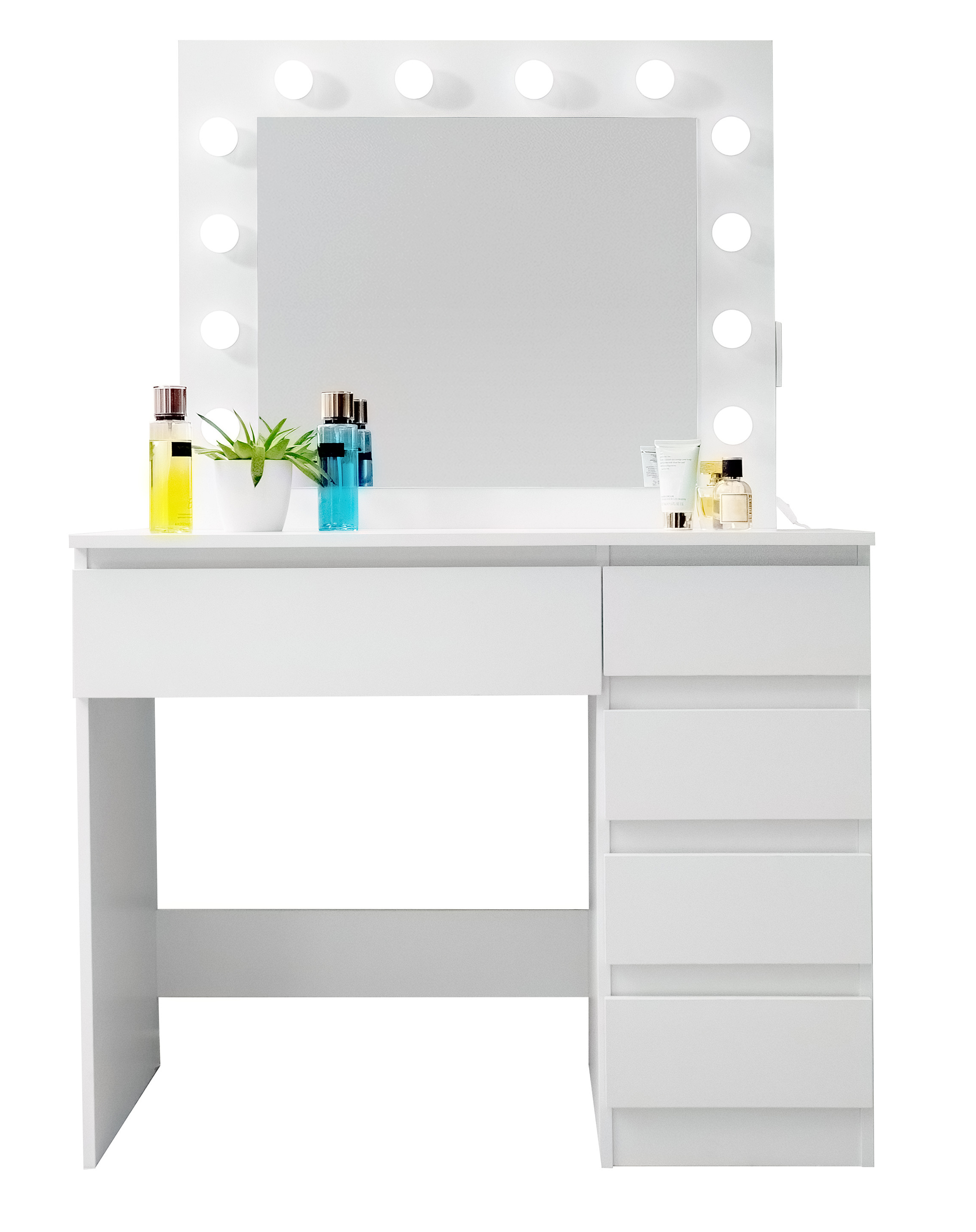 - Przestronny blat stołu do przechowywania kosmetyków i innych niezbędnych rzeczy