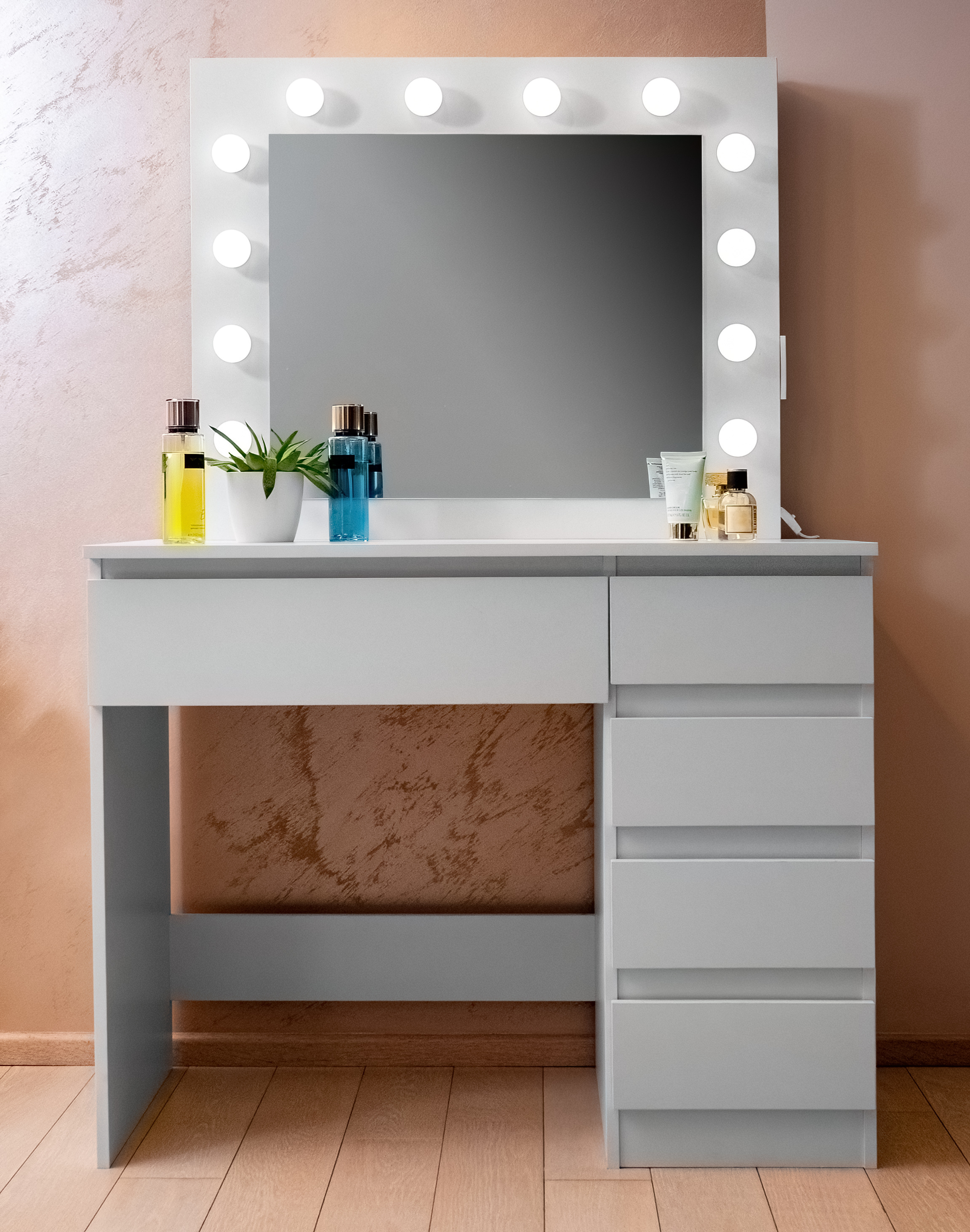 Docenisz 5 pojemnych szuflad, w których wygodnie przechowasz wszystkie kosmetyki, biżuterię i inne akcesoria.