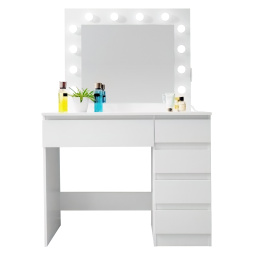 W lustrze znajduje się 12 żarówek LED, dzięki czemu możesz wygodnie wykonać makijaż nawet przy słabym oświetleniu naturalnym.Z boku lustra znajduje się gniazdko elektryczne, np. na suszarkę, prostownicę do włosów oraz złącza USB do ładowania urządzeń mobilnych.