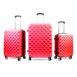 Wszystkie walizki w zestawie są wyposażone w cztery obrotowe koła 360°. Walizka posiada teleskopową, trzystopniową, ergonomiczną rączkę, a także dwa uchwyty: na górze i z boku walizki do przenoszenia.