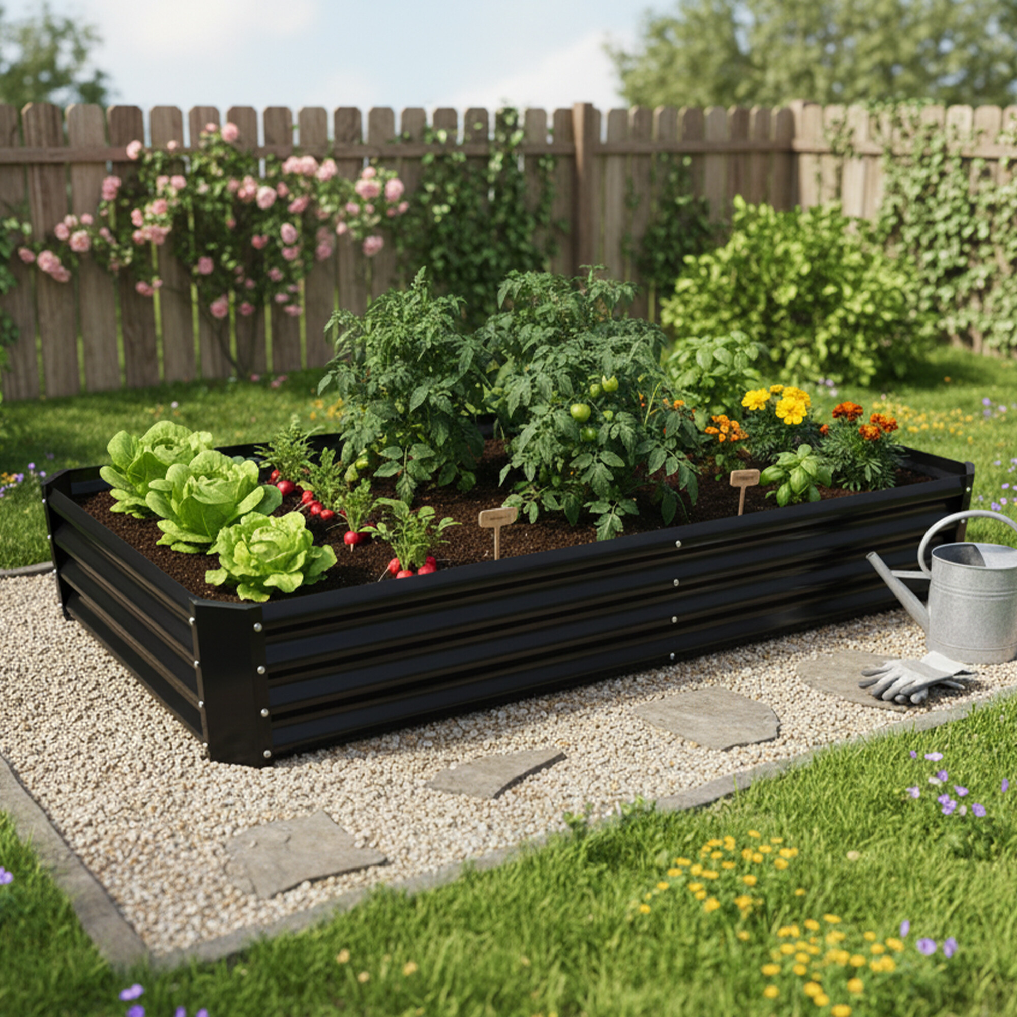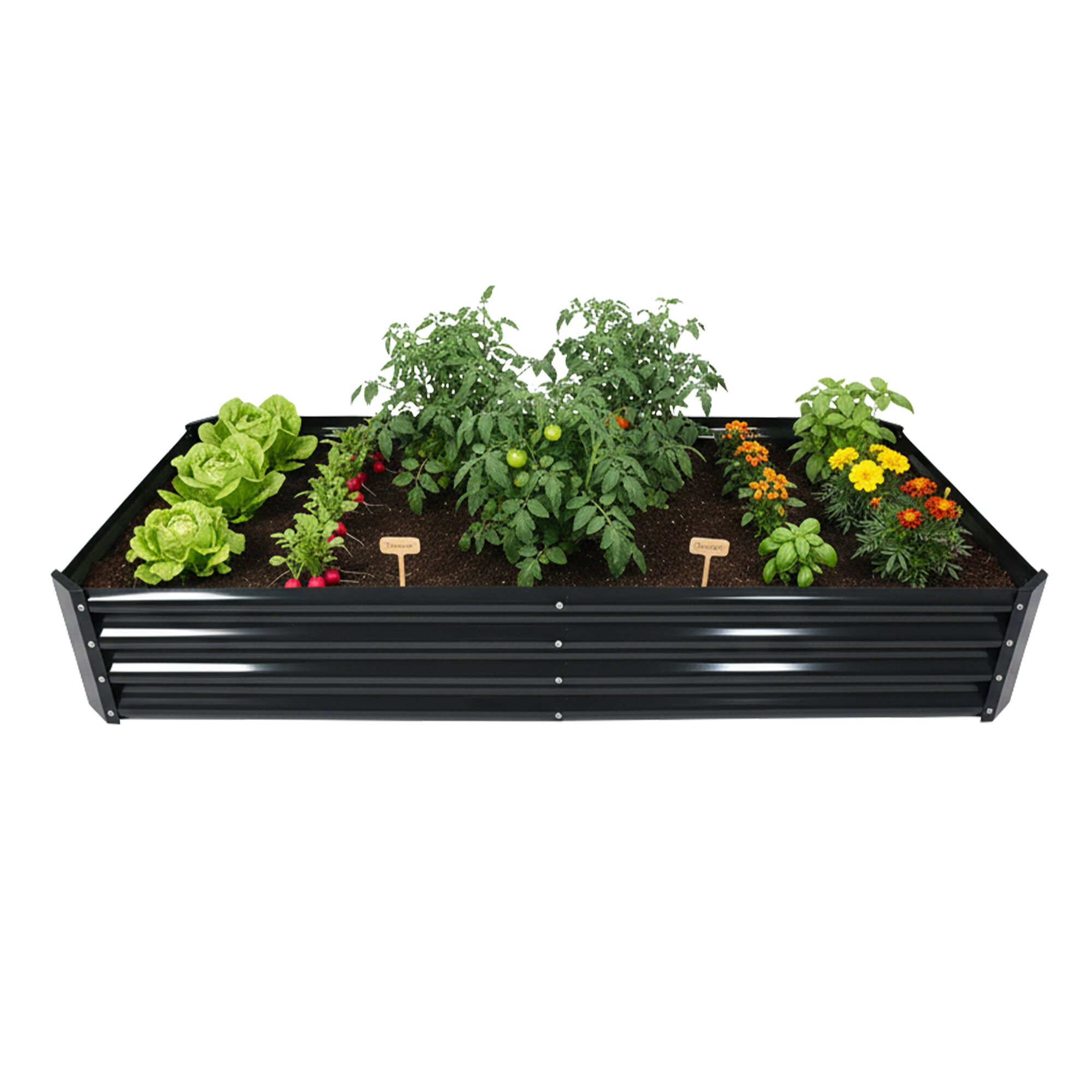 Grządka jest wykonana z odpornej ocynkowanej stali, dzięki czemu doskonale opiera się warunkom atmosferycznym i nadaje się do użytku na zewnątrz.