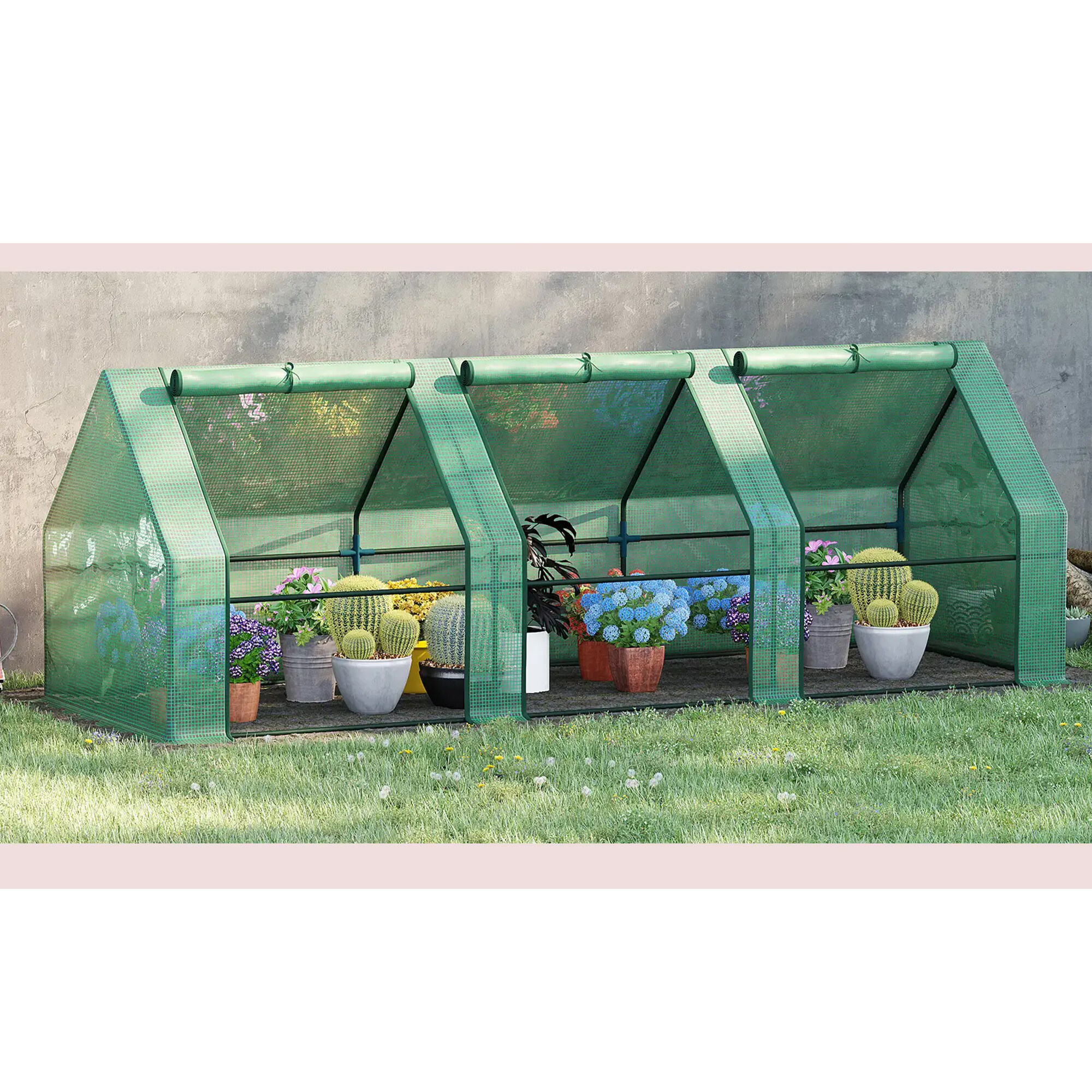 Szklarnia jest lekka, więc w razie potrzeby można ją łatwo przesuwać. Posiada zwijane okna z podwójnym zamkiem błyskawicznym dla łatwiejszej wentylacji.