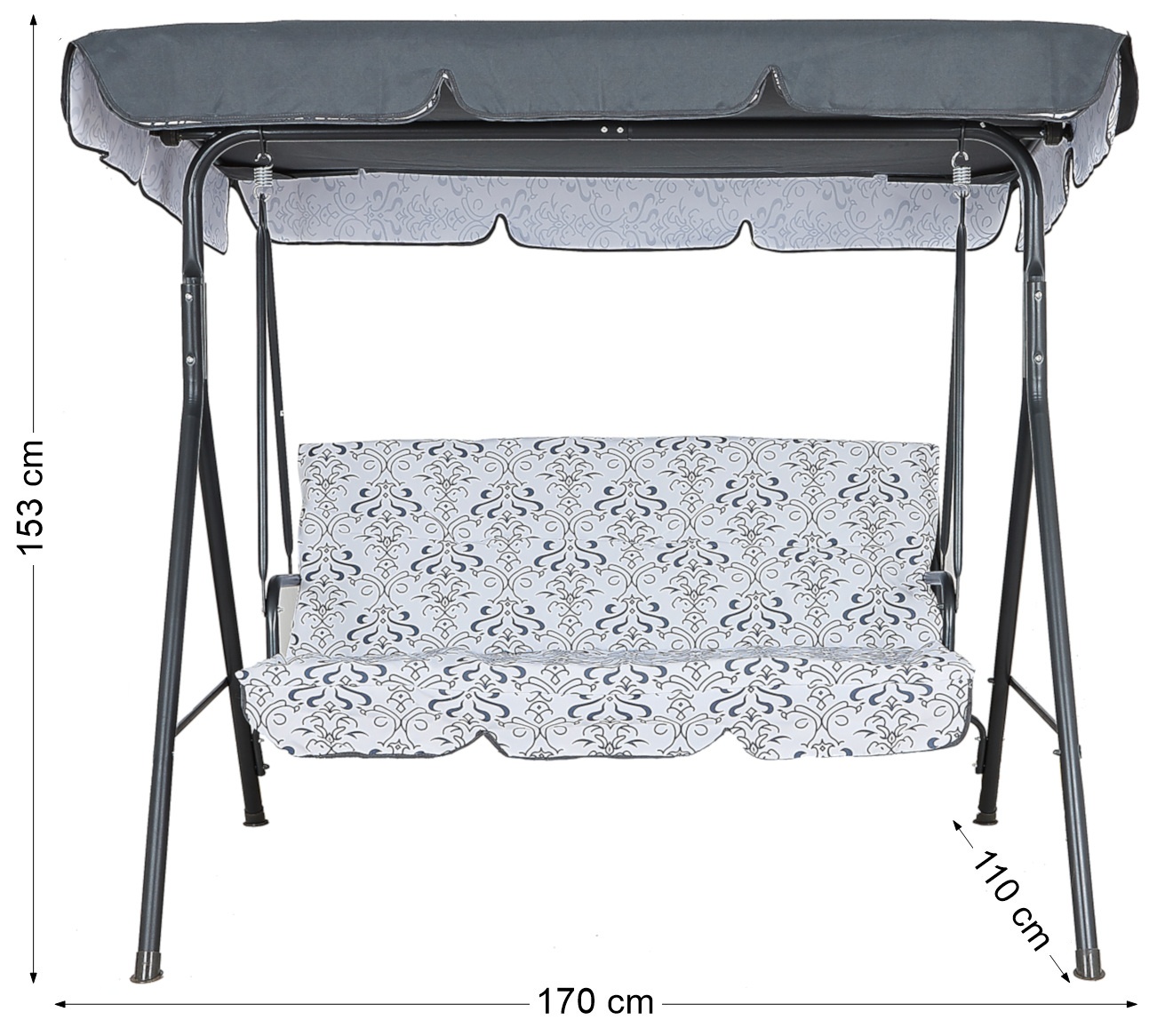 Huśtawka jest również bardzo łatwa w utrzymaniu, pokrowce wraz z daszkiem są zdejmowane i można je prać (pranie ręczne).