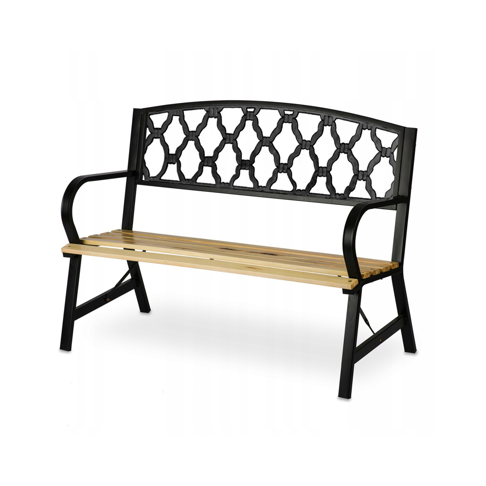 Solidna konstrukcja stalowa, uzupełniona drewnianymi listwami. Nośność ławki 150 kg.