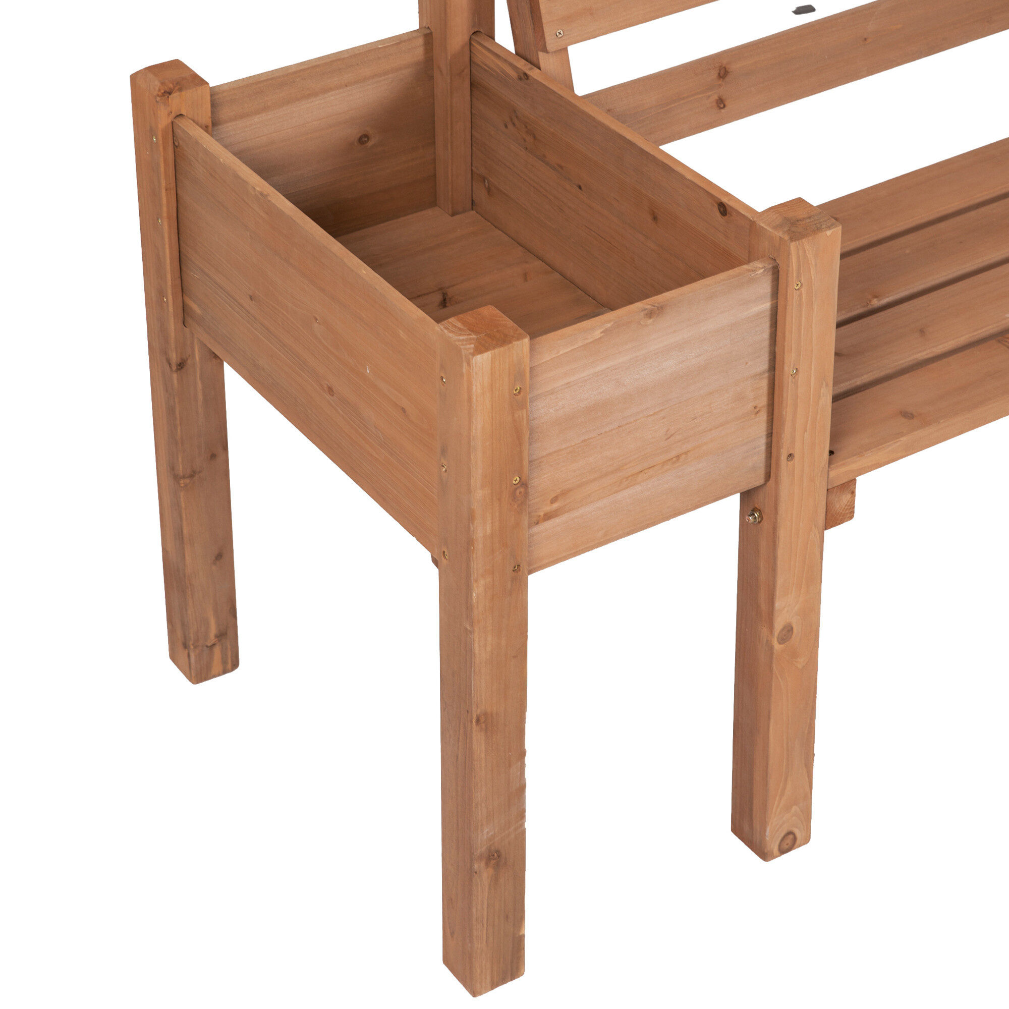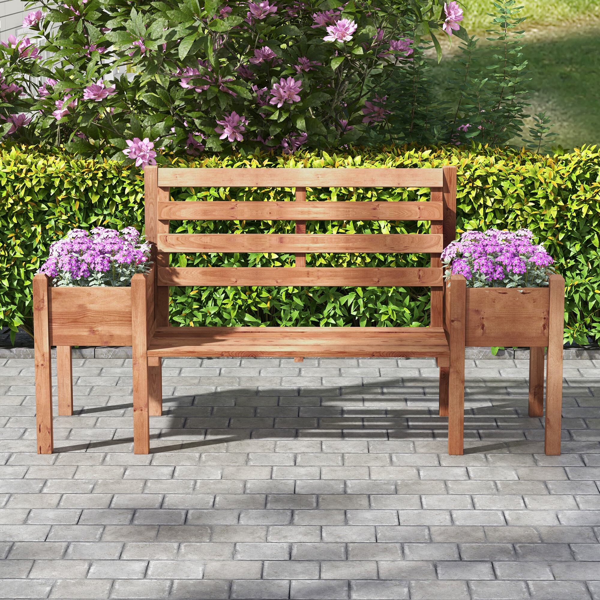 Odkryj harmonijne połączenie komfortu i stylu dzięki połączeniu ławki ogrodowej i podwyższonej rabaty.