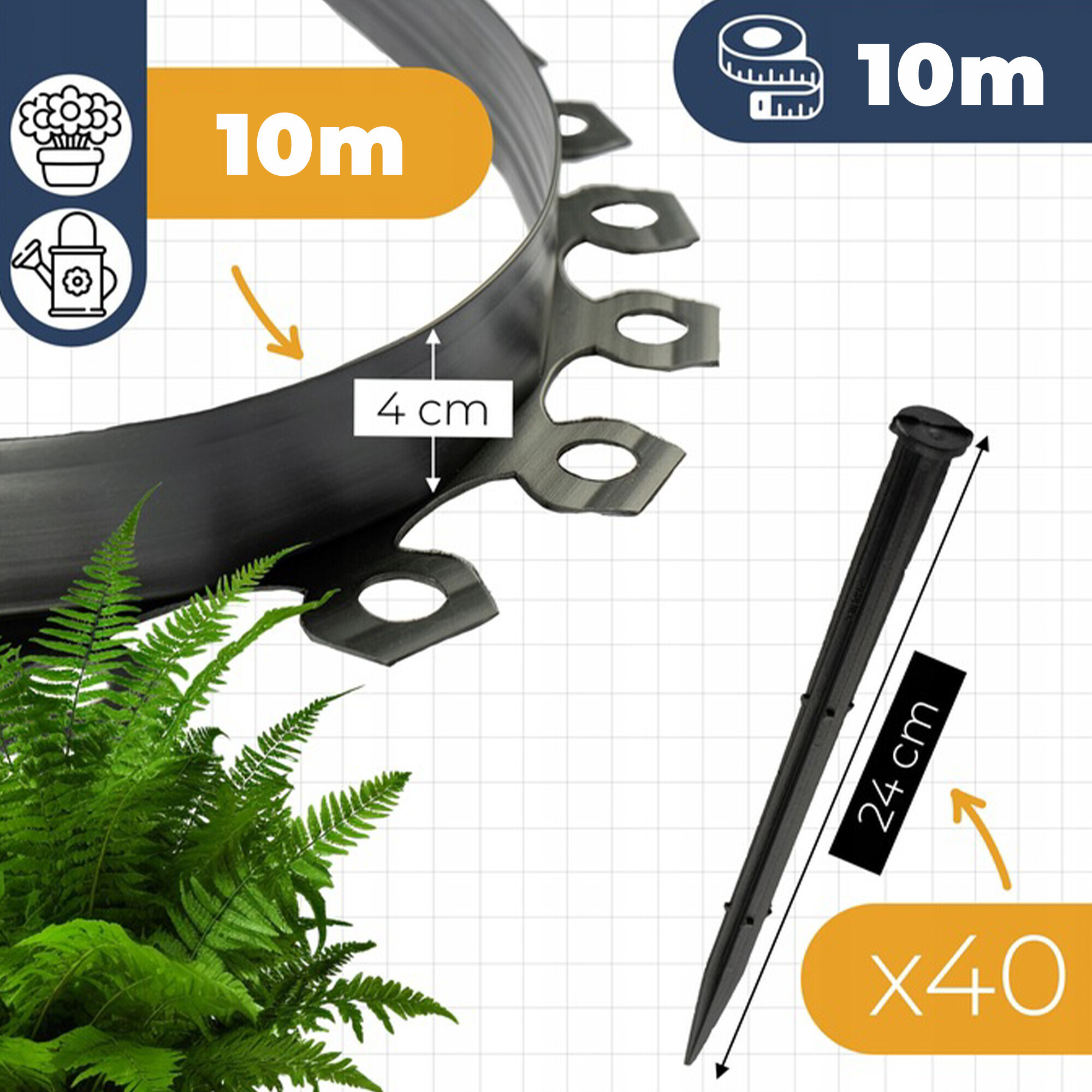 Plastikowe obrzeże ogrodowe o długości 10 m to niezawodne rozwiązanie do oddzielania trawników, rabat kwiatowych, ścieżek i innych części ogrodu. Obrzeże wykonane jest z elastycznego tworzywa sztucznego, które pozwala na tworzenie linii prostych i łuków, dzięki czemu bez problemu dopasowuje się do każdego terenu.