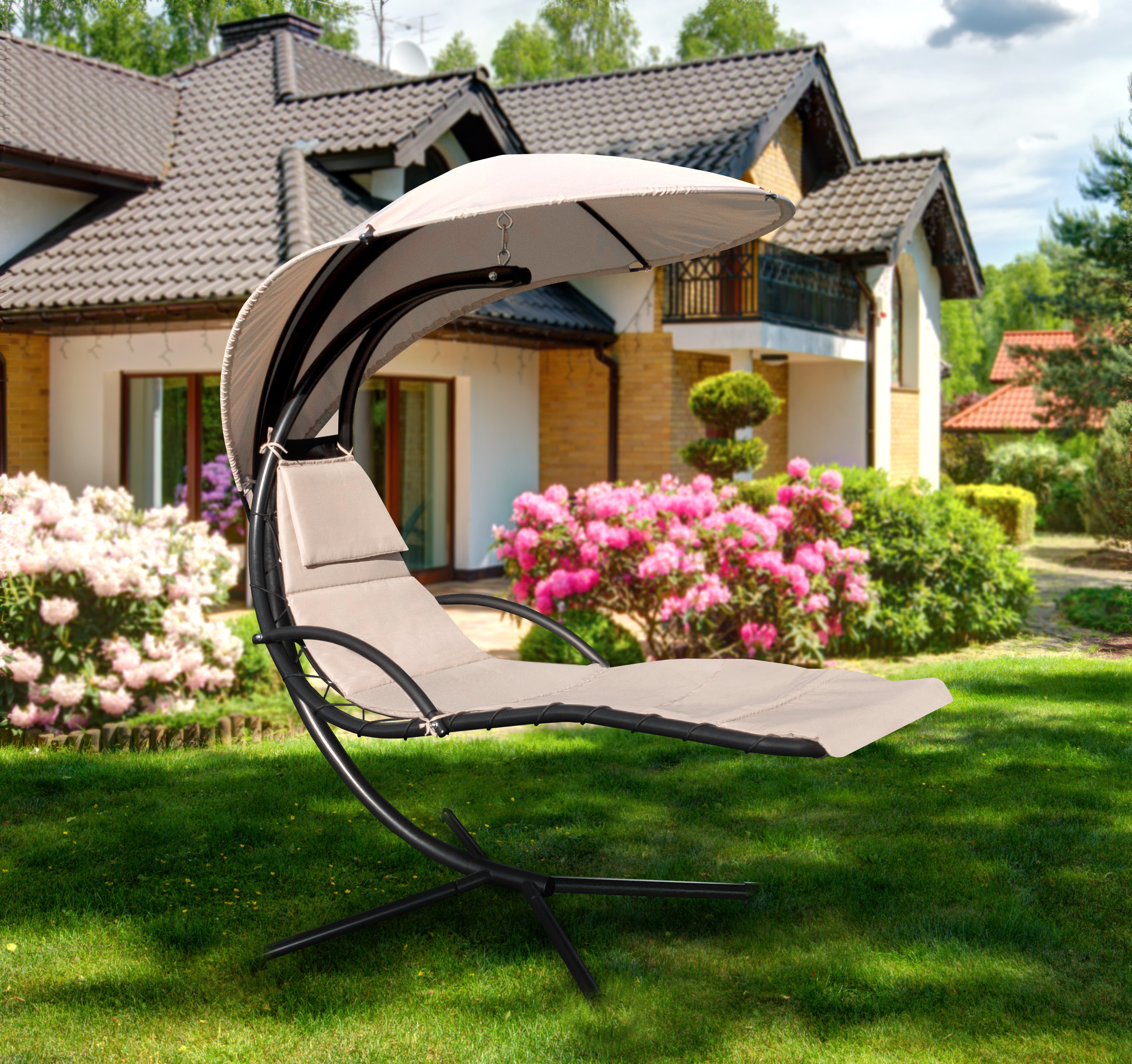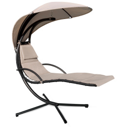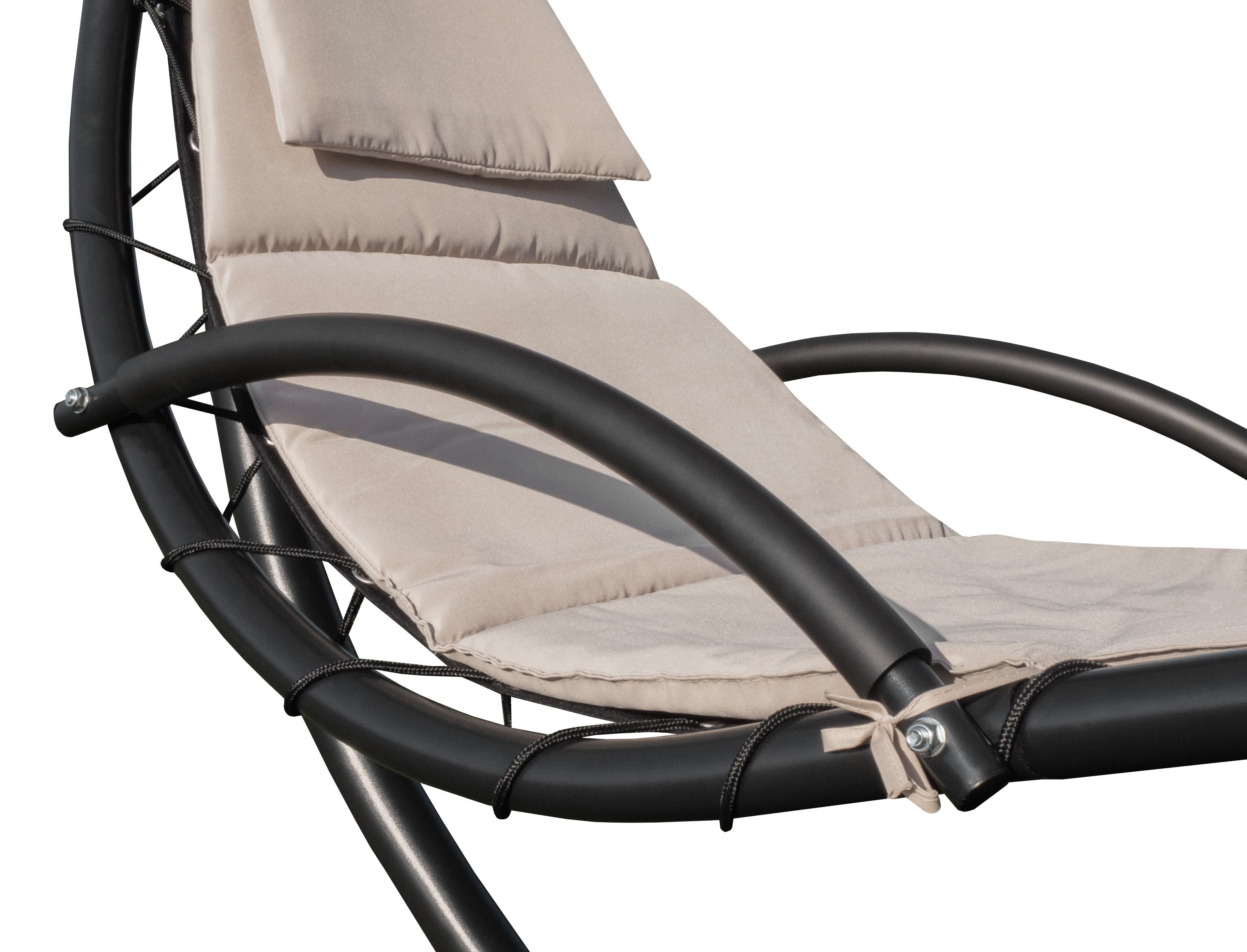 Łatwe kołysanie dzięki specjalnemu kształtowi leżaka. Wygodnie wyprofilowana powierzchnia leżanki wraz z zagłówkiem zapewnia doskonały wypoczynek.