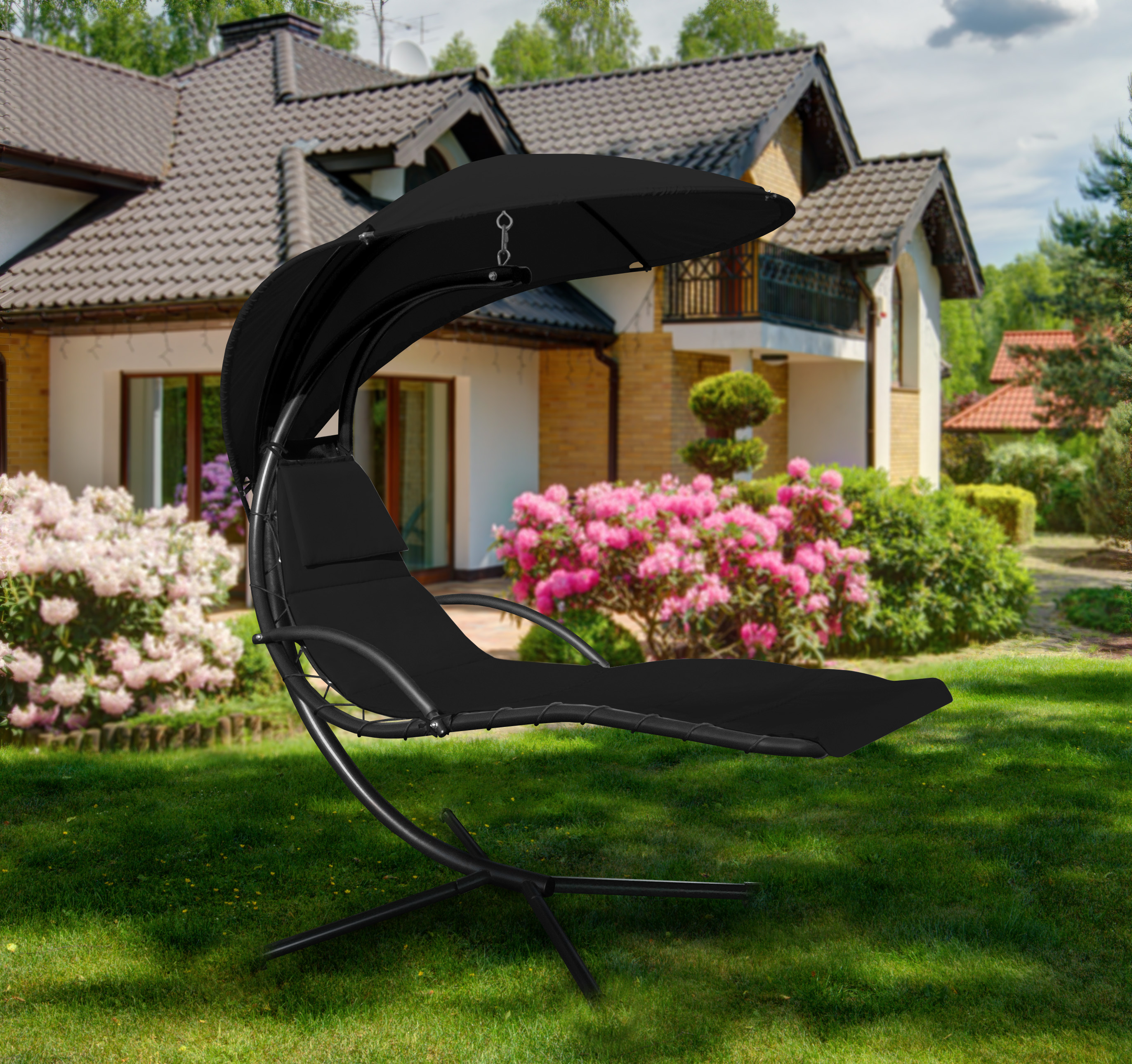 Stylowy bujak ogrodowy z parasolem to najlepszy wybór do relaksu przy basenie, w ogrodzie lub na tarasie.