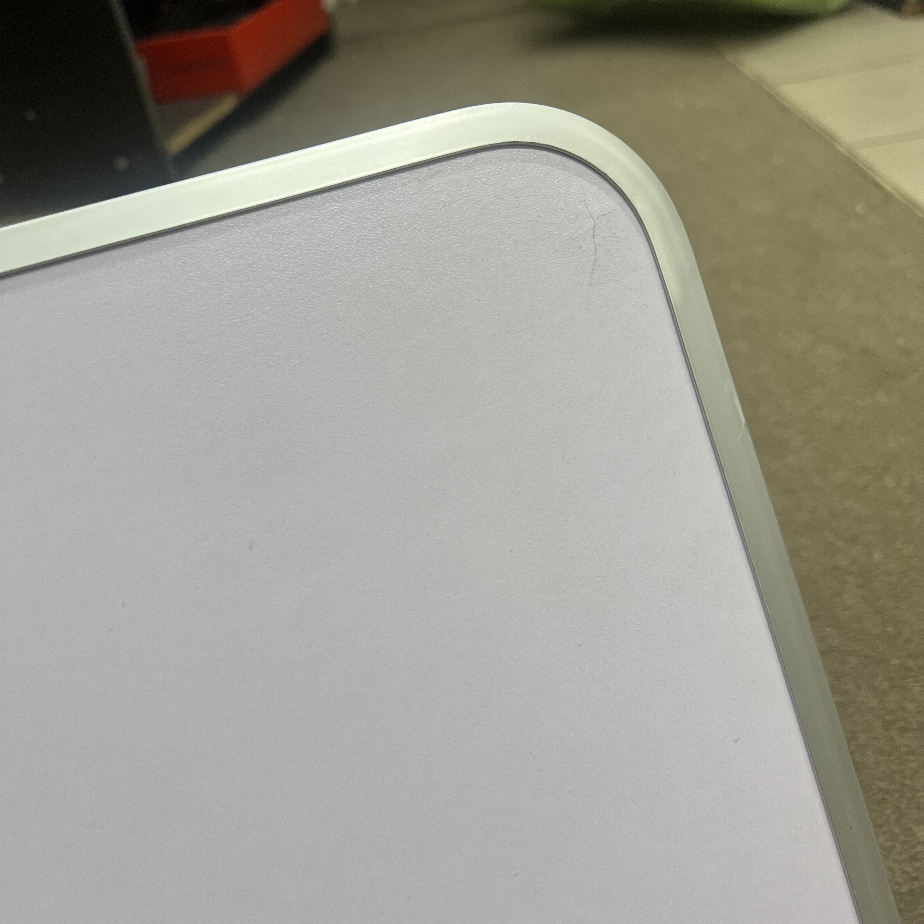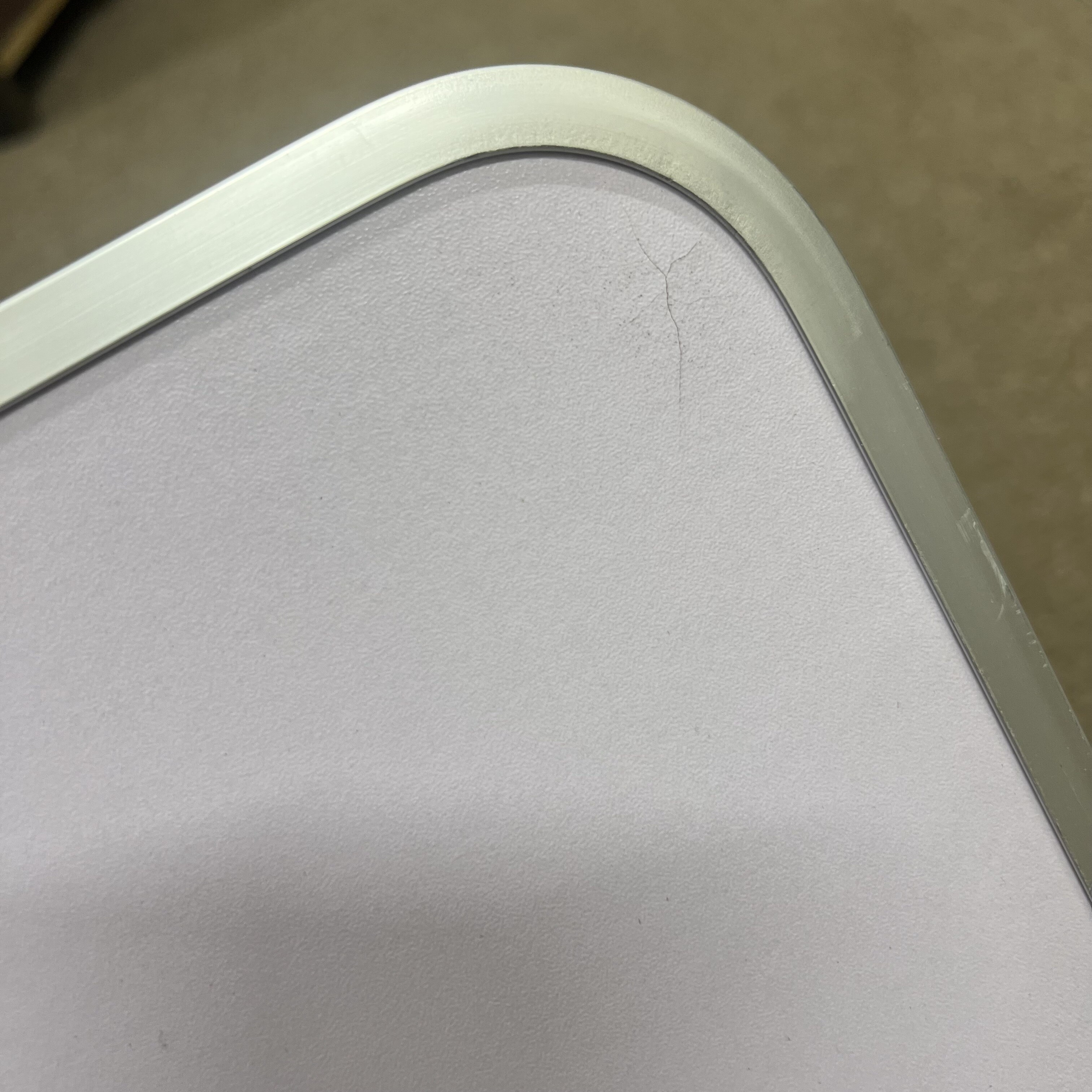 Rozkładany stół ma w rogach dwa drobne uszkodzenia.
