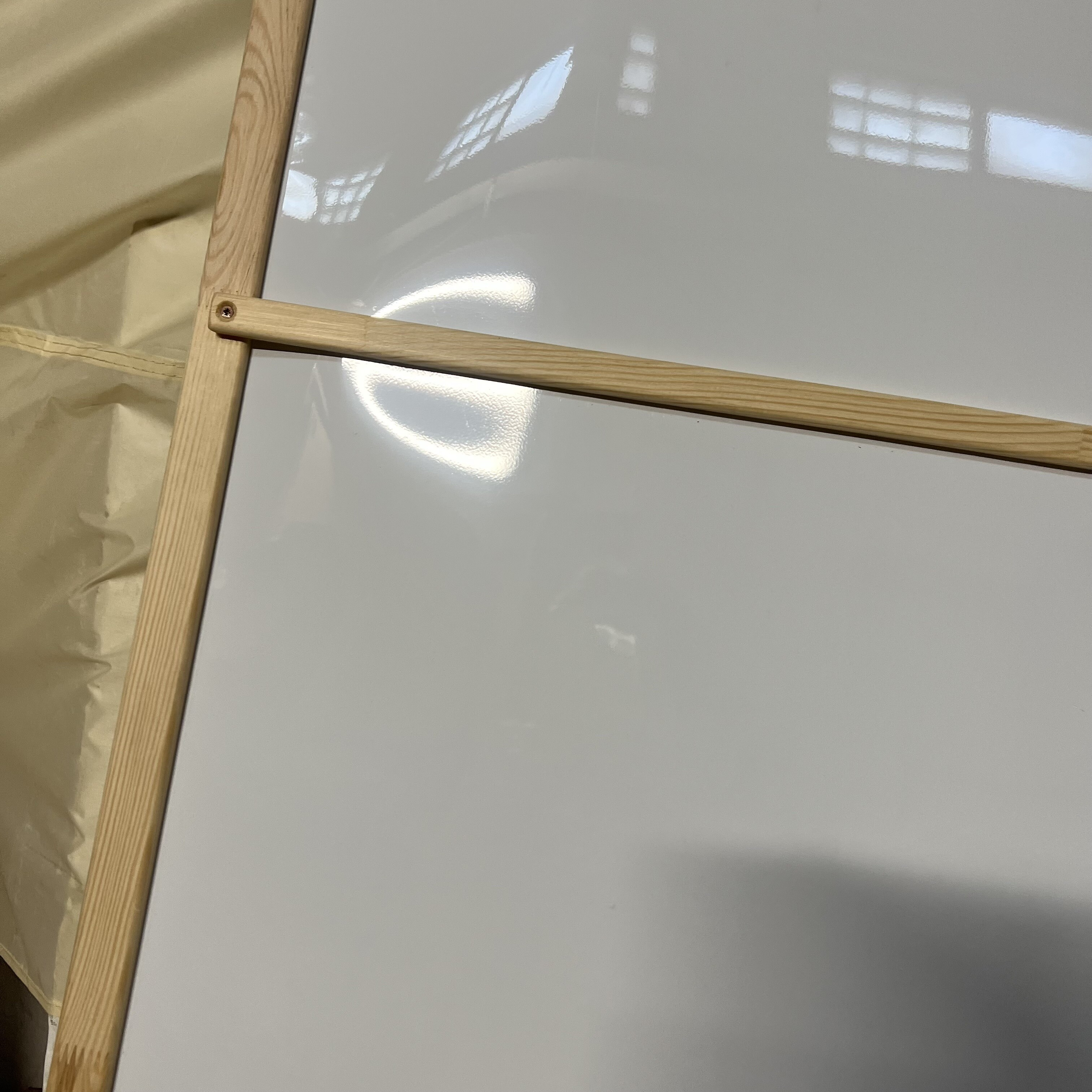 Tablica jest lekko uszkodzona. Biała część deski jest wygięta w jednym miejscu i nie da się jej połączyć w jednym narożniku (krótki pręt).