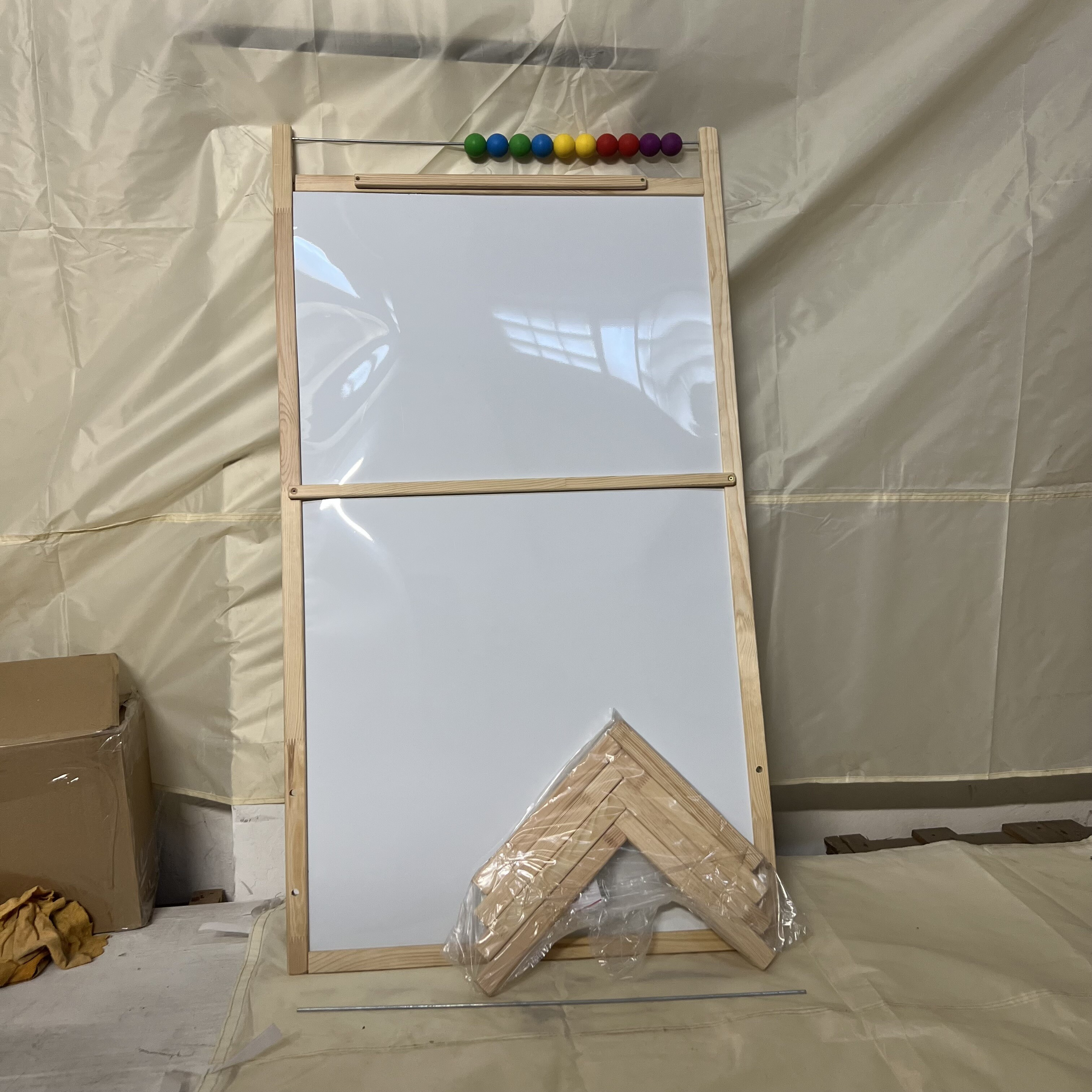 - Zestaw zawiera: dwustronną tablicę, licznik, rolkę papieru (20m), gąbkę, ściereczkę, kredę i marker.
