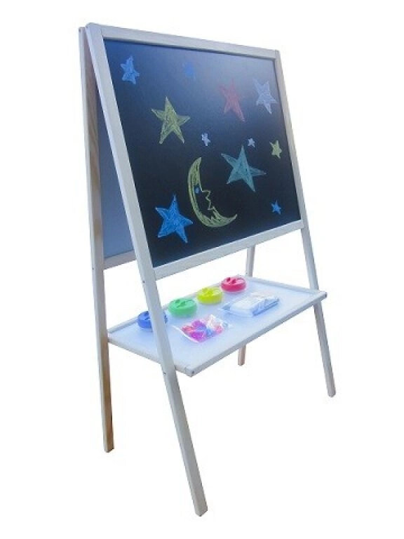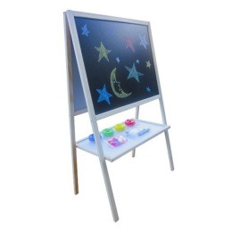 Dwustronna tablica magnetyczna dla dzieci z półką do przechowywania, na praktycznym stojaku, od Aga4Kids.