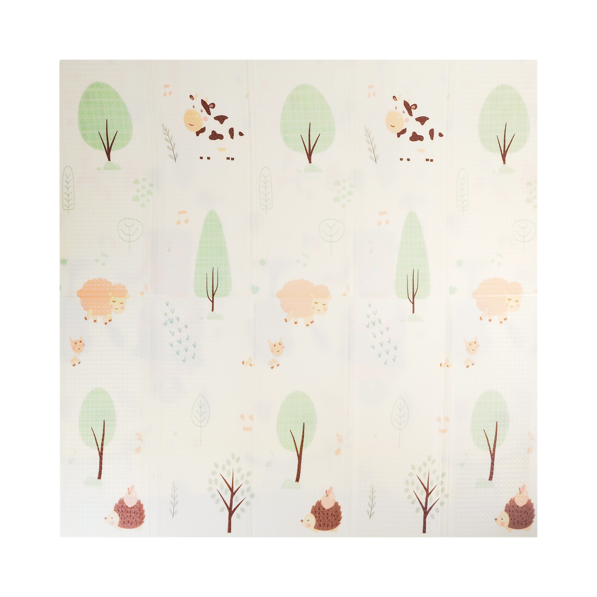 Mata do zabawy posiada dwustronny nadruk z wesołymi motywami, a antypoślizgowa powierzchnia zapewnia bezpieczeństwo każdej zabawy.