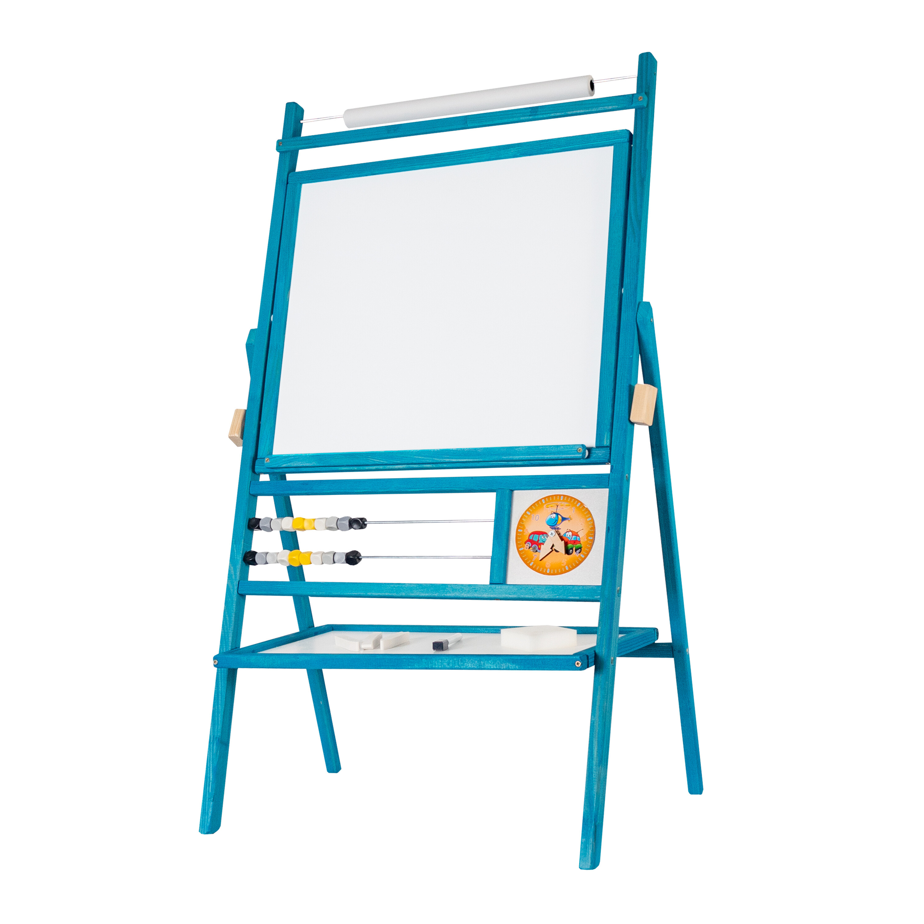 Dwustronna tablica magnetyczna dla dzieci z półką do przechowywania i 20-metrową rolką papieru, od Aga4Kids.