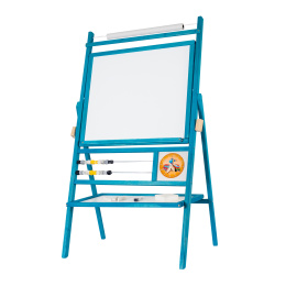 - Zestaw zawiera - 2 tablice dla dzieci, 5 kolorowych kred, 1 marker, 1 rolkę papieru (20m), 1 gąbkę, 1 ściereczkę