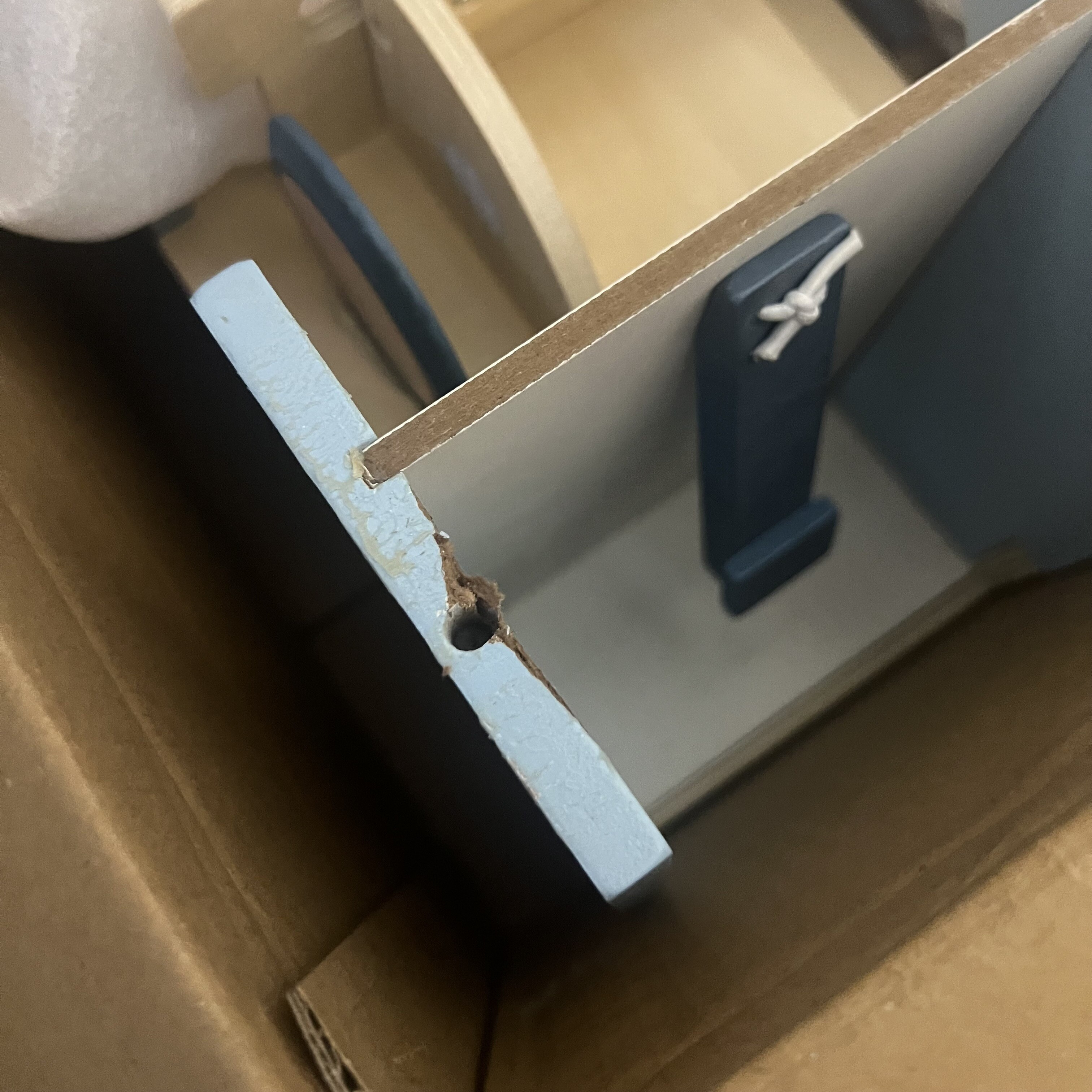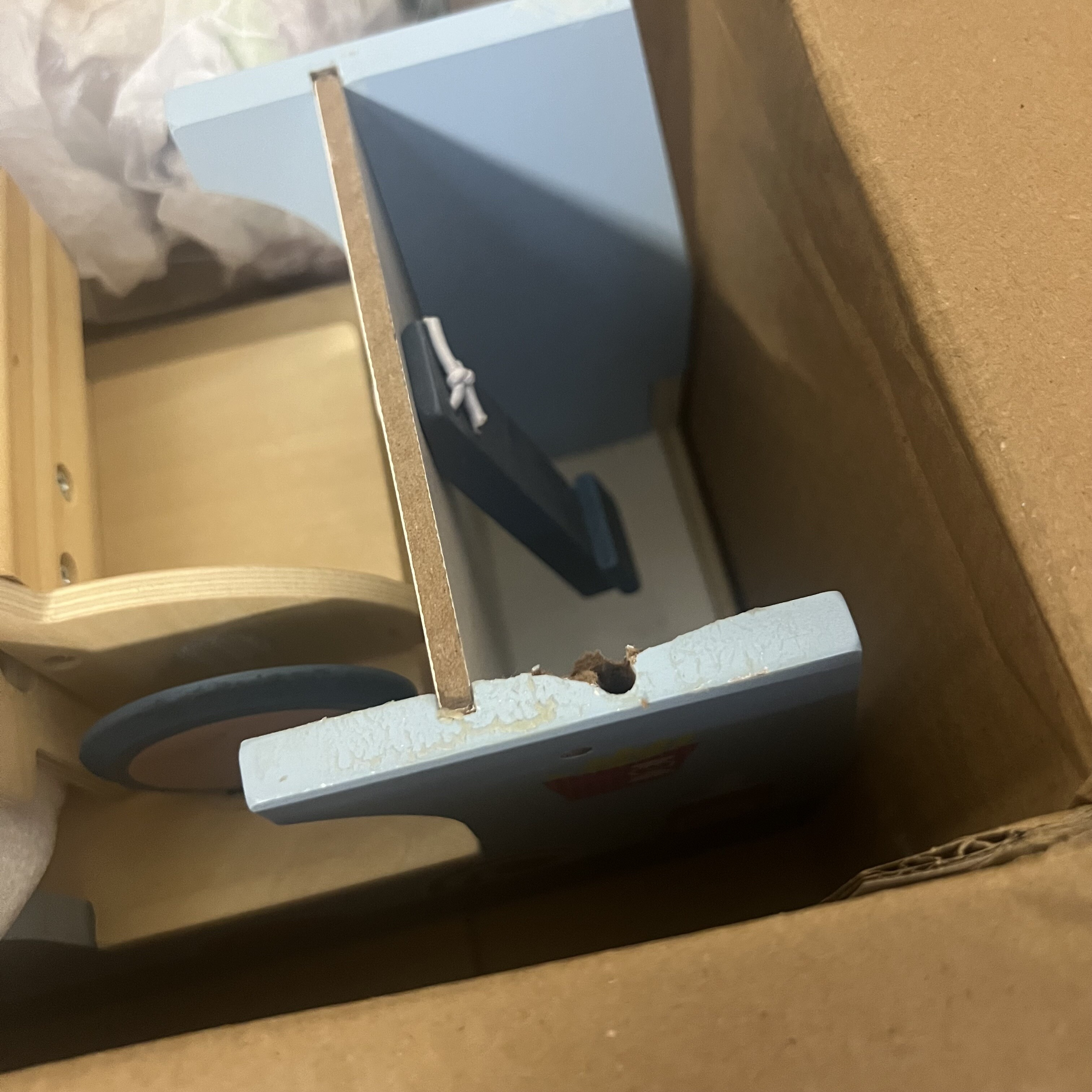 Zabawka z uszkodzonymi elementami bocznymi łączącymi górę i dół. Do samodzielnej naprawy.