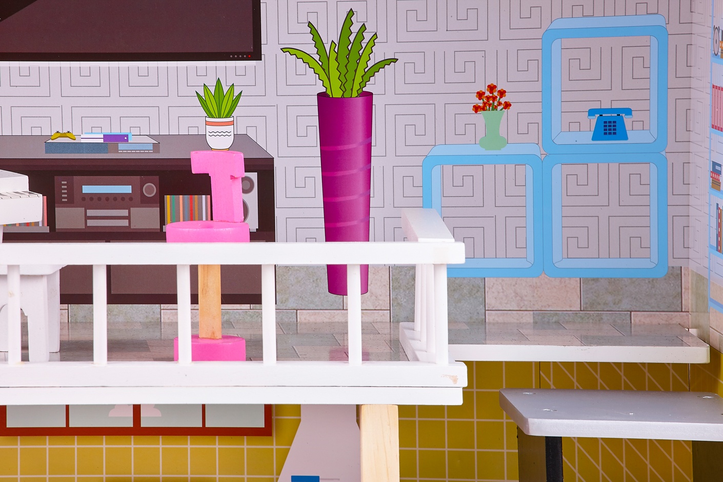 Domeček ma w sumie trzy piętra, z których pierwsze i drugie połączone są windą, a drugie i trzecie - spiralnymi schodami. W domu znajdują się cztery pokoje, każdy umeblowany i urządzony w innym stylu.