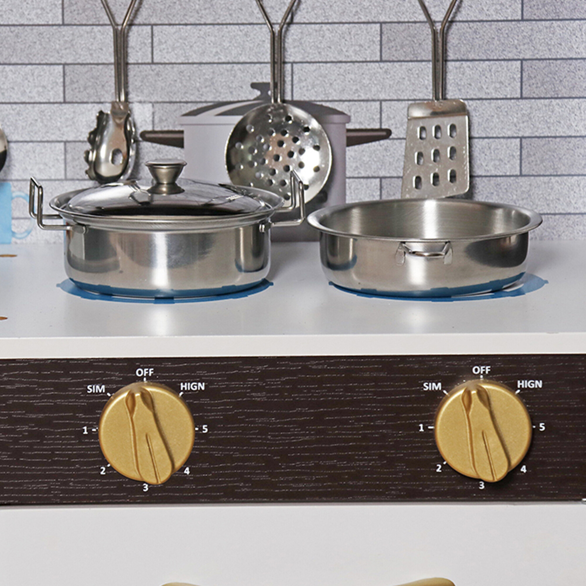 - Stabilna i trwała konstrukcja kuchni zapewnia bezpieczeństwo podczas zabawy