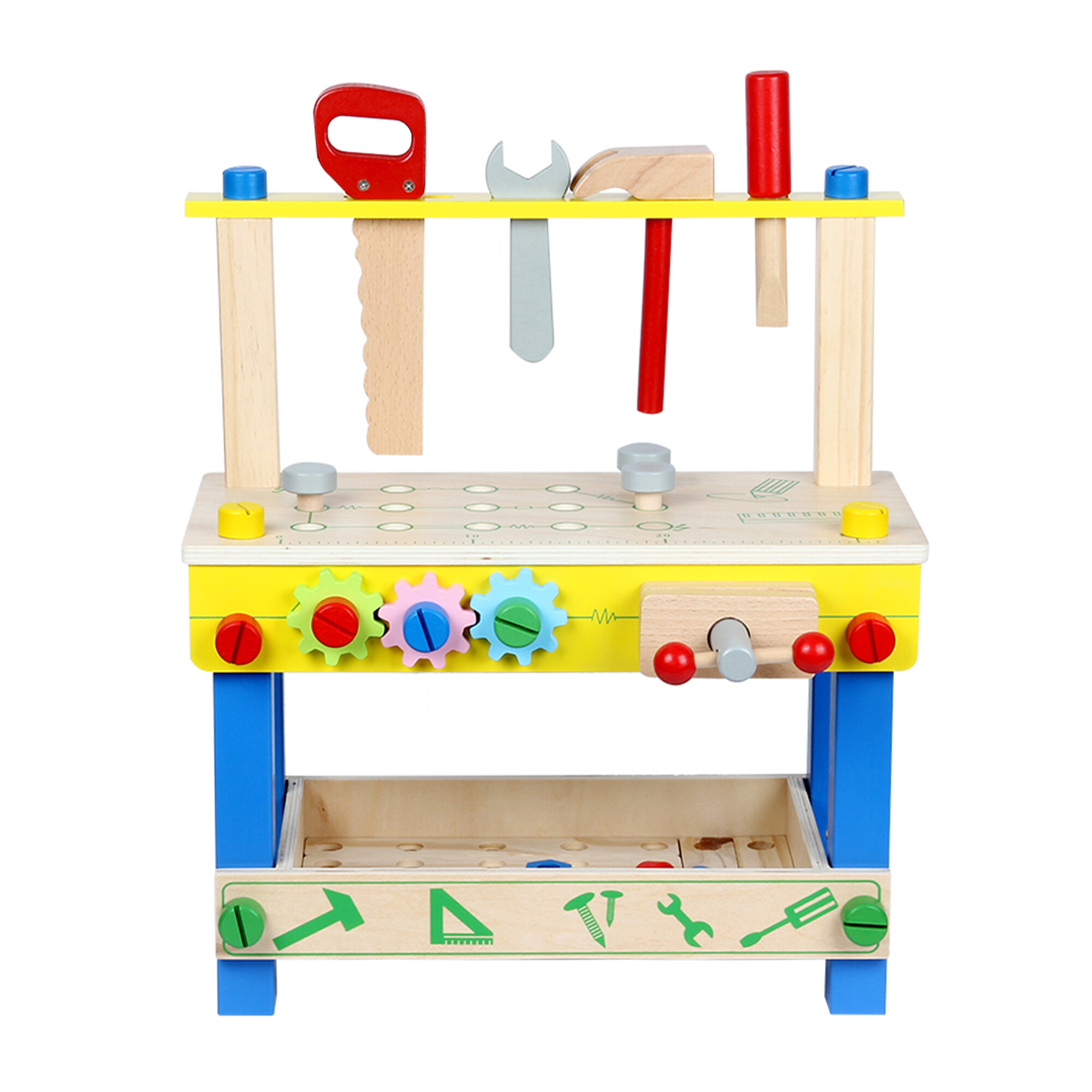 Warsztat drewniany dla dzieci pozwoli każdemu dziecku na chwilę zamienić się w złotą rączkę lub mechanika. Warsztat drewniany z narzędziami to zabawka, dzięki której dziecko może zamienić się w dorosłego i naśladować dorosłe czynności. Dziecko poczuje się jak tatuś, który wykonuje drobne naprawy w domu. Nauka przez naśladowanie to najlepszy sposób na rozwijanie umiejętności i rozbudzanie zainteresowań!